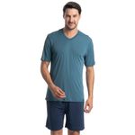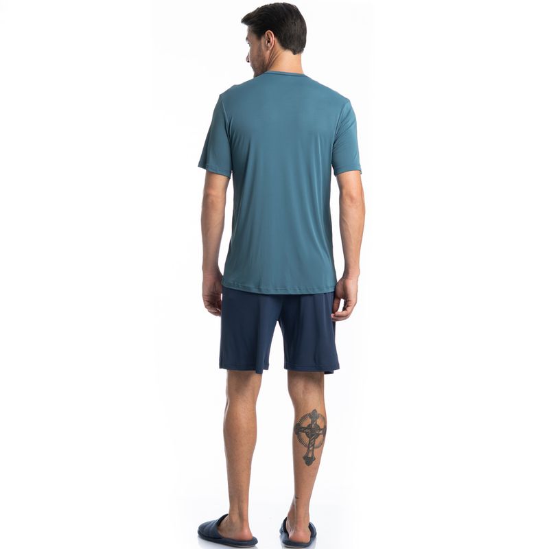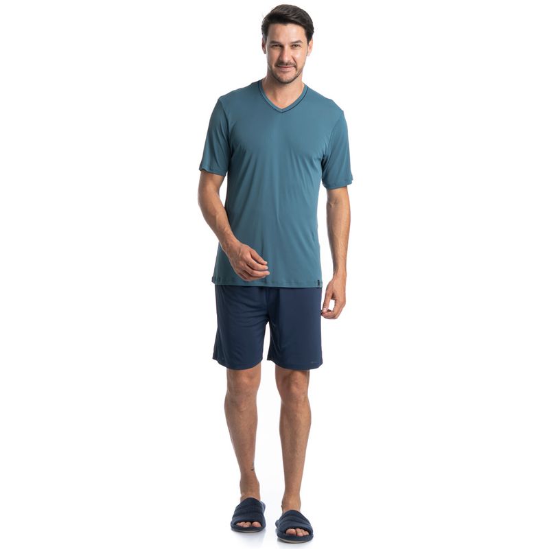 Pijama Masculino Curto Matheus Tombini é o estilo que você procura! Sua blusa manga curta possui decote V com detalhe em trançador de tom contrastante. Detalhe para sua etiqueta clip logo Tombini na lateral inferior esquerda da peça. Já o seu shorts conta com elástico macio no cós, proporcionando uma ótima noite de descanso.