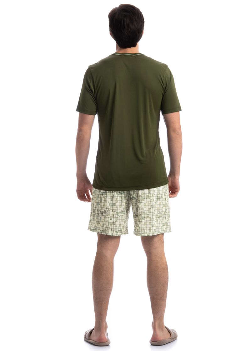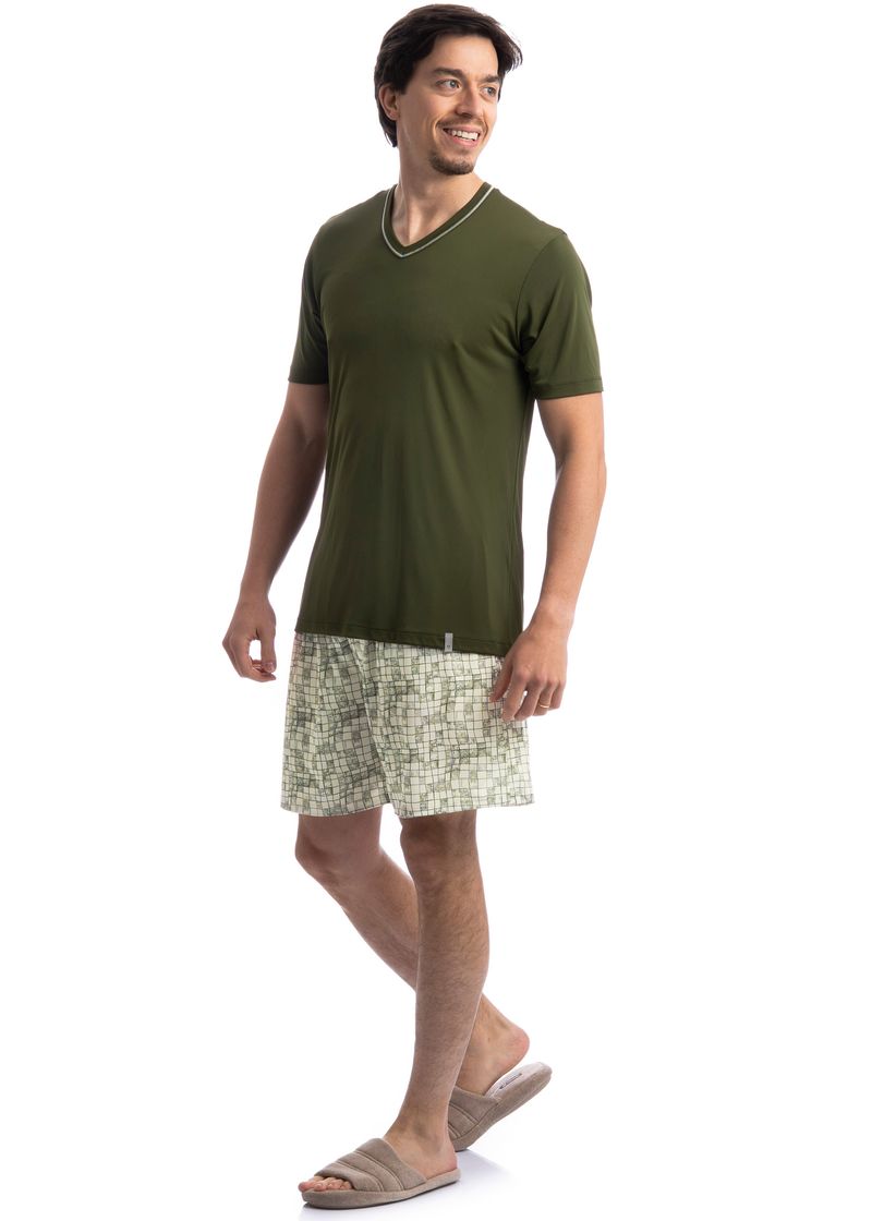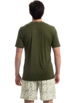 Pijama Masculino Curto Refúgio Tombini é perfeito para as noites mais quentes! Em modelagem muito confortável, sua blusa manga curta possui decote em V com acabamento em viés com trançador de tom contrastante. Detalhe para a etiqueta clips personalizada Tombini na lateral inferior esquerda. Já o seu shorts em modelagem ampla e confortável, é todo estampado e possui elástico macio no cós que garante muito conforto para as horas de descanso!