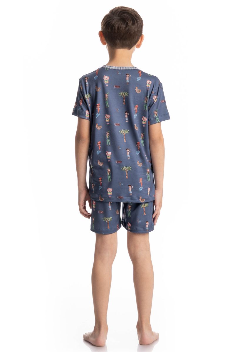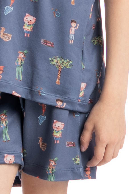 Pijama Masculino Infantil Curto Sítio Do Picapau Amarelo é puro charme! Em modelagem ampla e confortável, seu decote é redondo e suas mangas curtas. Seu Shorts com modelagem confortável e elástico macio no cós para um melhor descanso. Detalhe para sua linda estampa exclusiva desenhada à mão dos personagens do sítio do picapau amarelo, impossível não se apaixonar!