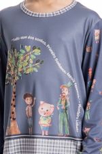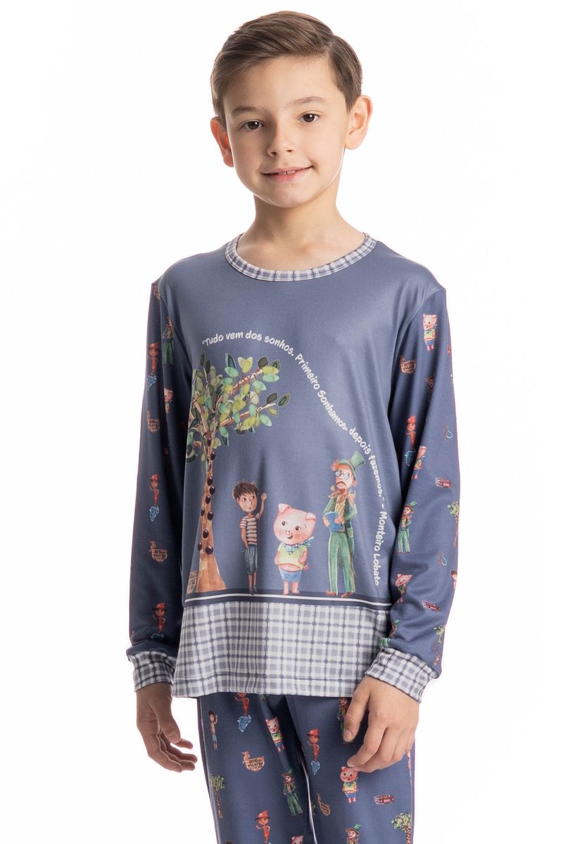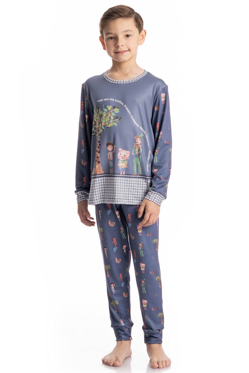 Pijama Masculino Infantil Longo Sítio Do Picapau Amarelo é puro charme! Em modelagem ampla e confortável, seu decote é redondo e suas mangas são longas com acabamentos em punhos. Sua calça com modelagem confortável, possui acabamento na barra em punho, e elástico macio no cós para um melhor descanso. Detalhe para sua linda estampa exclusiva desenhada à mão dos personagens Pedrinho, Rabicó e Visconde localizada ao centro da blusa, junto com a frase do Monteiro Lobato “Tudo vem dos sonhos, primeiro sonhamos, depois fazemos”. Já as mangas e a calça contam com os personagens do sítio do picapau amarelo, impossível não se apaixonar!