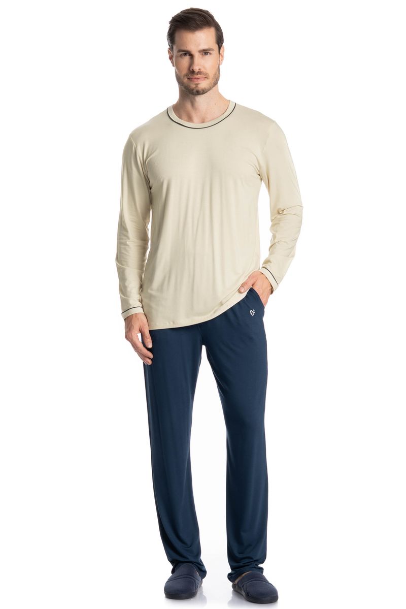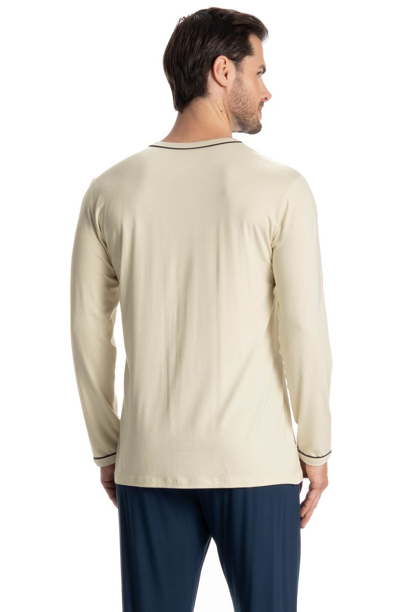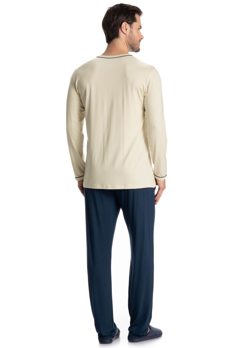 Pijama Masculino Longo Augusto é o conforto que você precisa! O pijama proporciona leveza com uma modelagem mais ampla. Sua blusa é de manga curta com decote redondo e acabamento em viés. Sua calça possui bolso estilo faca, e detalhe para logo Tombini bordado na lateral esquerda abaixo do bolso garantindo muito estilo.