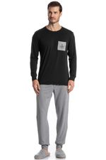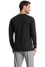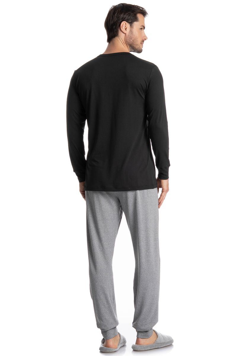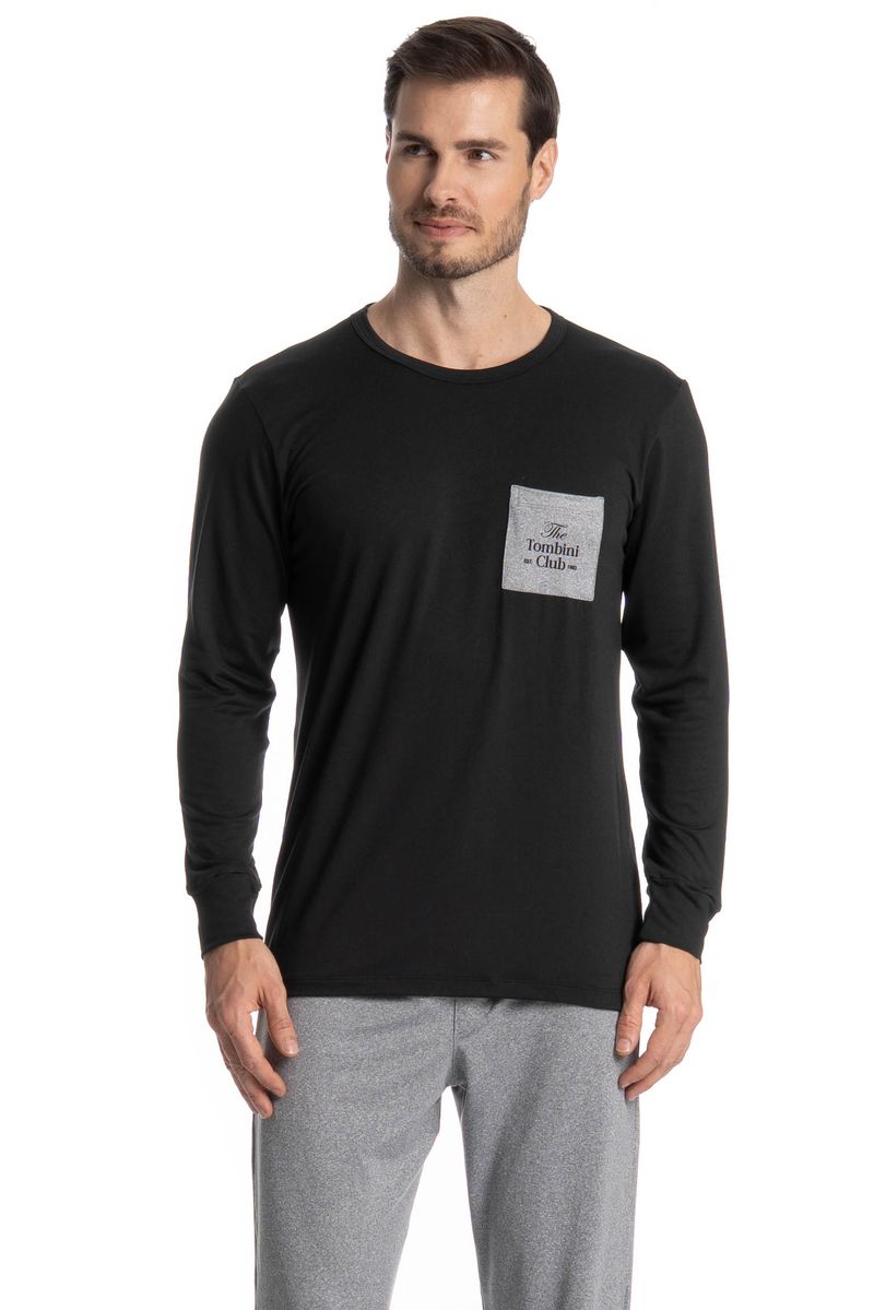 O Pijama Masculino Longo Caio é ideal para quem busca conforto aliado a um visual moderno! A blusa de manga longa na cor preta possui modelagem confortável e bolso frontal com detalhe discreto, que agrega charme e estilo à peça, o bolso conta com a frase “The Tombini Club”. A calça longa em tom mescla completa o conjunto, oferecendo caimento leve e toque macio.
