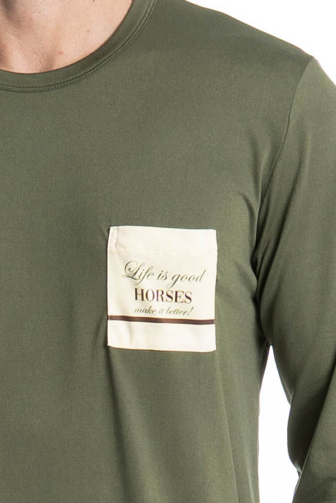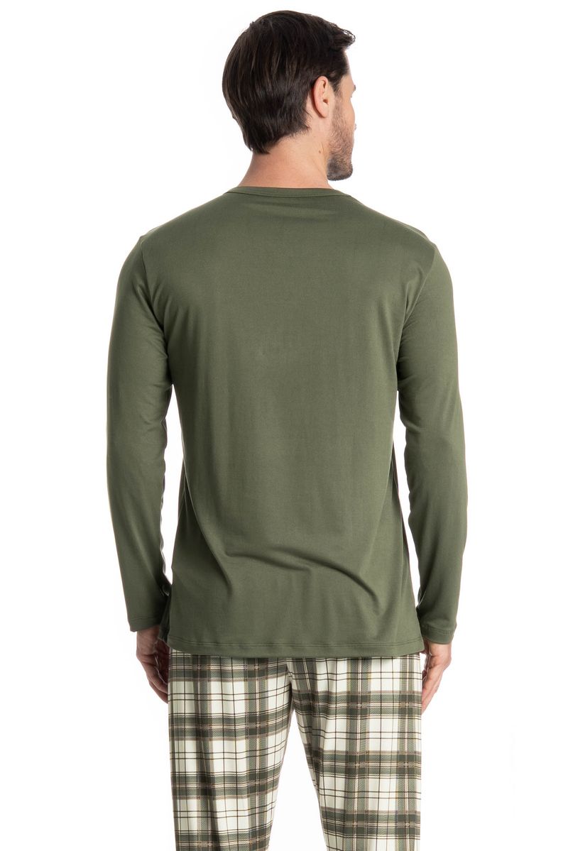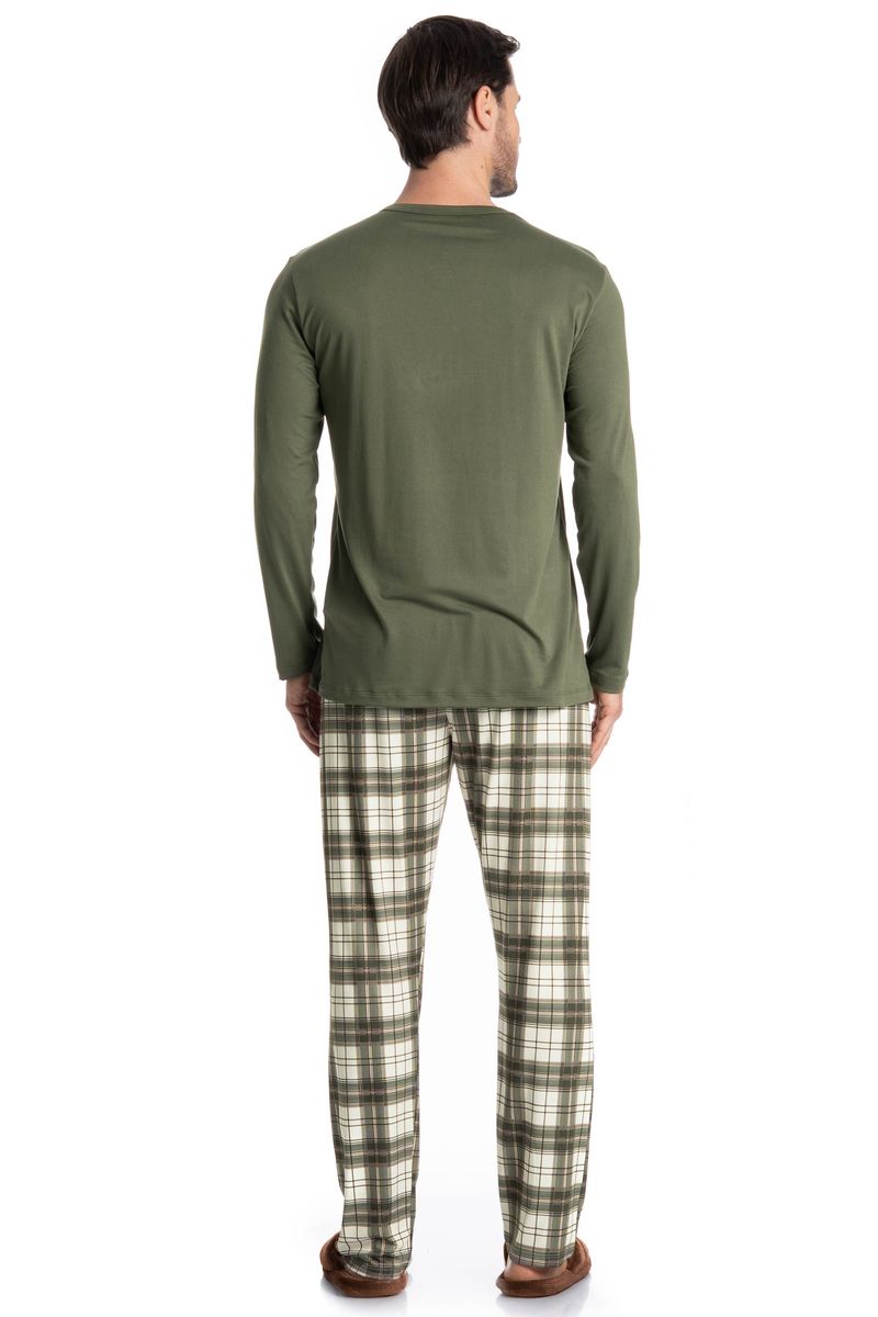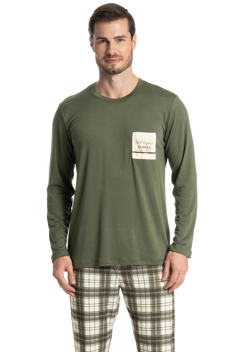 Pijama Masculino Longo Chess é estilo para as suas horas de descanso! Sua blusa em modelagem ampla e confortável, possui decote redondo debruado com viés, e conta com bolso na lateral esquerda com a frase Life Is Good Horses Make It Better. Já sua calça, é toda estampada em um clássico xadrez, trazendo estilo e elegância nas suas melhores horas!
