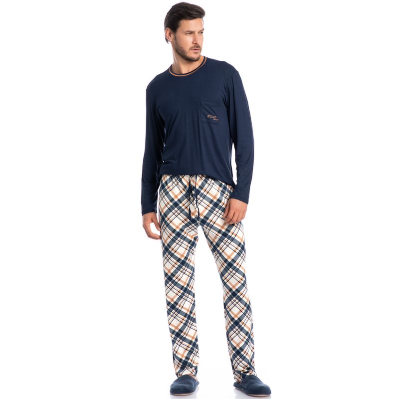 Pijama Masculino Longo Chess Tombini é excelente para suas noites em família! O pijama proporciona leveza e conforto com uma modelagem tradicional e ampla. Sua Blusa manga longa com decote redondo, possui detalhe em viés contrastante e em sua lateral esquerda conta com bolso bordado “Dad Mood”. Sua calça muito confortável tem uma clássica e moderna estampa xadrez.