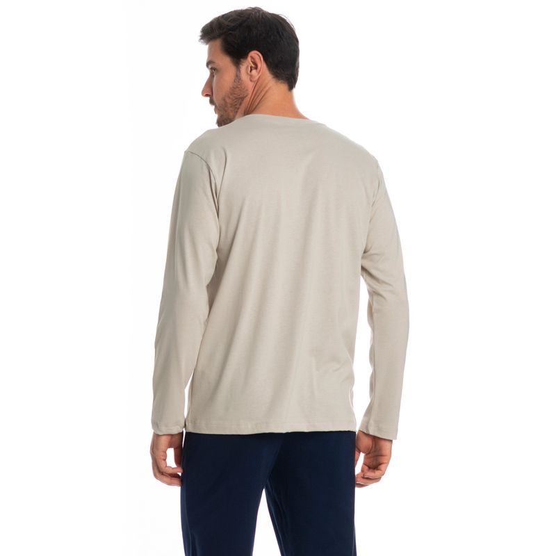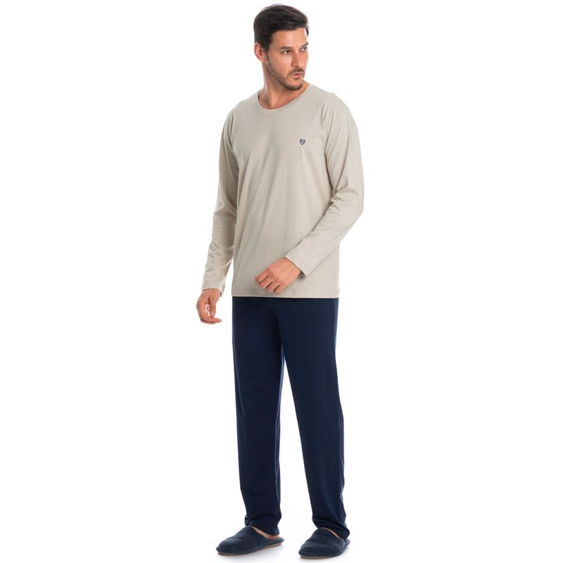Pijama Masculino Longo Dado Tombini é puro conforto! Sua Blusa manga longa, com modelagem ampla e confortável, possui decote redondo com acabamento em gola. Detalhe para seu bordado logo Tombini na lateral esquerda da peça. Sua calça, em comprimento longo e modelagem ampla, possui elástico macio no cós para maior conforto. Muito estilo para estar com você nos melhores momentos!