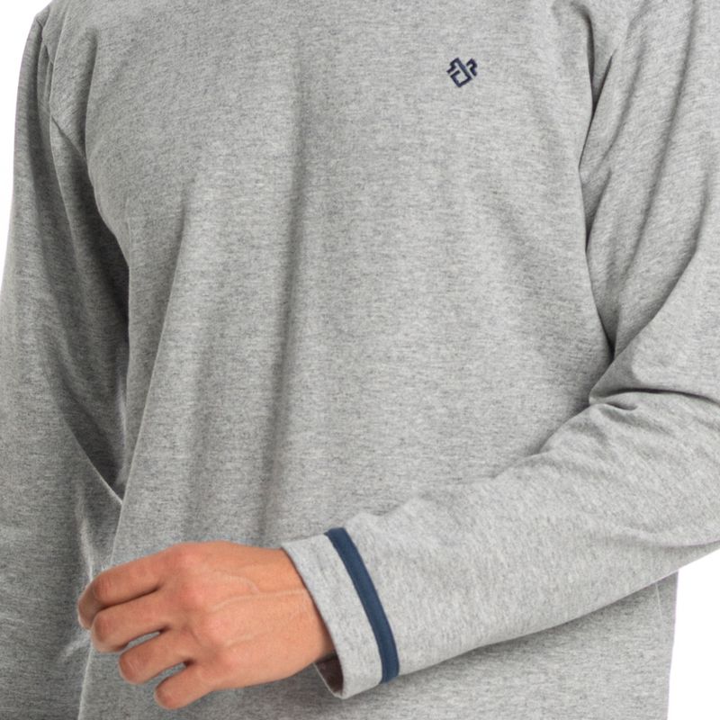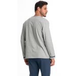 Pijama Masculino Longo Giovanne Tombini é estilo para suas horas de descanso! Sua blusa lisa possui manga longa e decote redondo com acabamento em gola. Suas mangas possuem aplicação de sofisticados filetes de cetim, e em sua lateral esquerda conta com bordado logo Tombini. Já sua calça também lisa, possui modelagem ampla e confortável, e elástico macio no cós. Perfeito para deixar seu inverno ainda mais confortável.