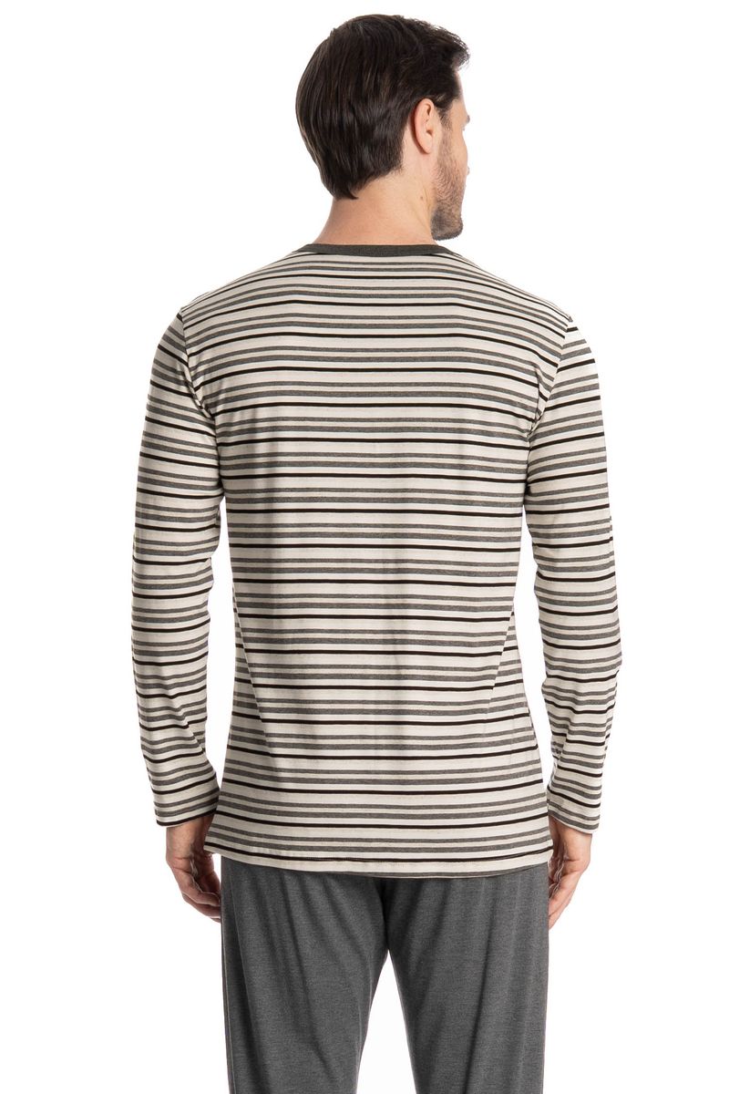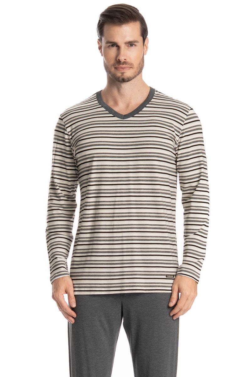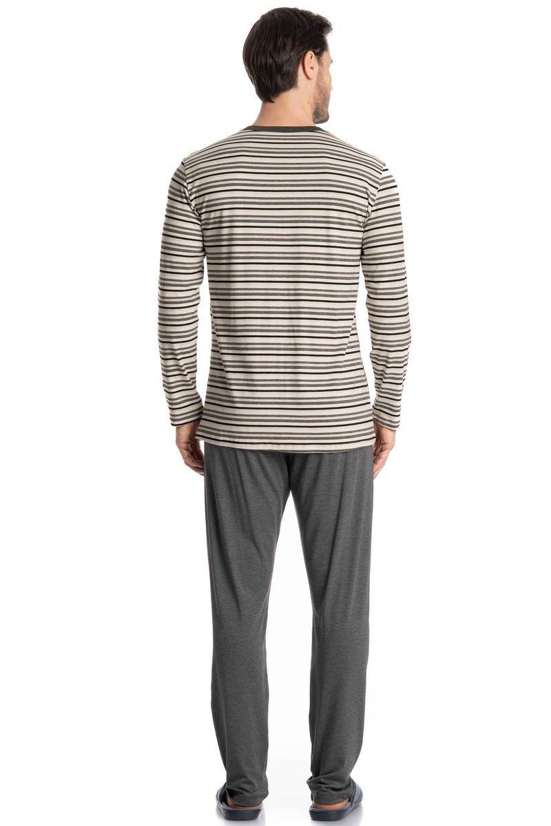 Pijama Masculino Longo José é a nossa peça clássica que você ama! Sua blusa em modelagem ampla e confortável, é toda estampada em um elegante e sofisticado listrado com manga longa, e decote em V debruado com viés. Detalhe para a etiqueta personalizada Tombini na lateral inferior esquerda da peça. Já sua calça em modelagem ampla, é liso e possui elástico macio no cós que garante muito conforto para as horas de descanso!