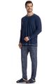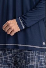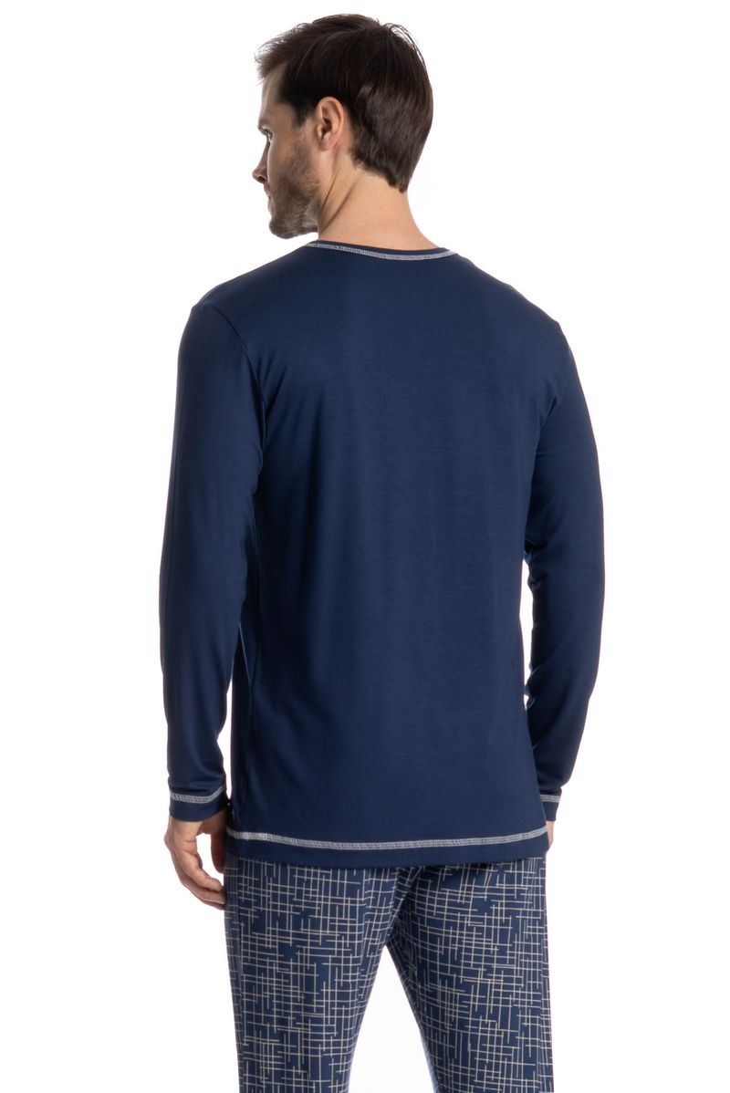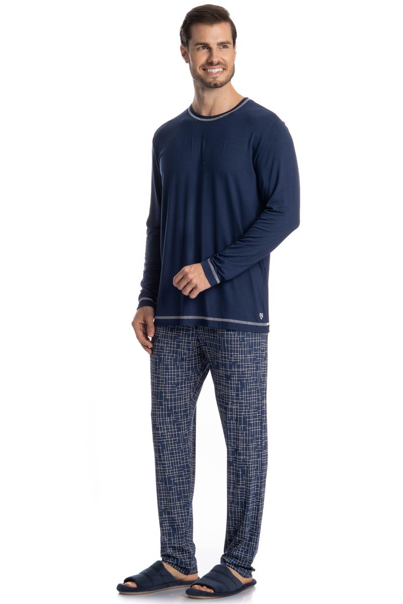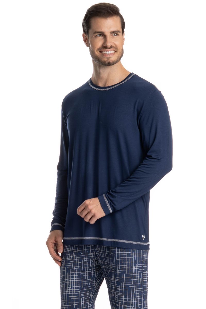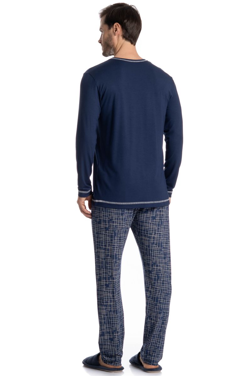 Pijama Masculino Longo Luigi é excelente para suas noites! Em modelagem muito confortável, sua blusa manga longa possui decote em V com acabamento em viés com trançador contrastante. Detalhe para seu bordado logo Tombini na lateral esquerda. Sua calça muito confortável e possui uma linda estampa. Perfeito para quem valoriza conforto, praticidade e um visual leve!