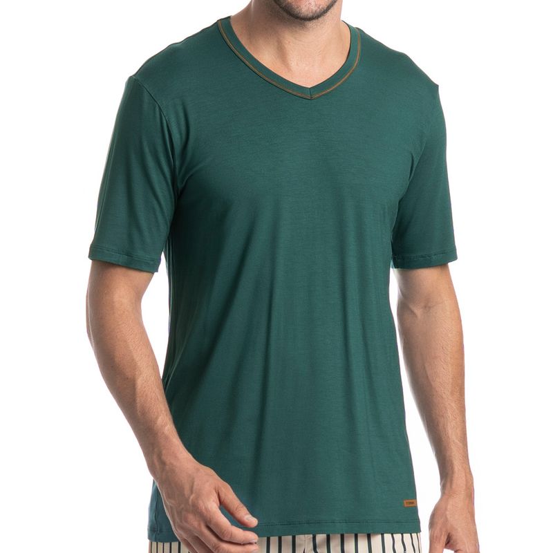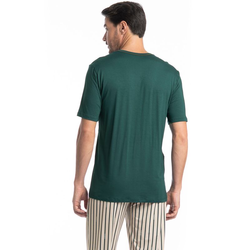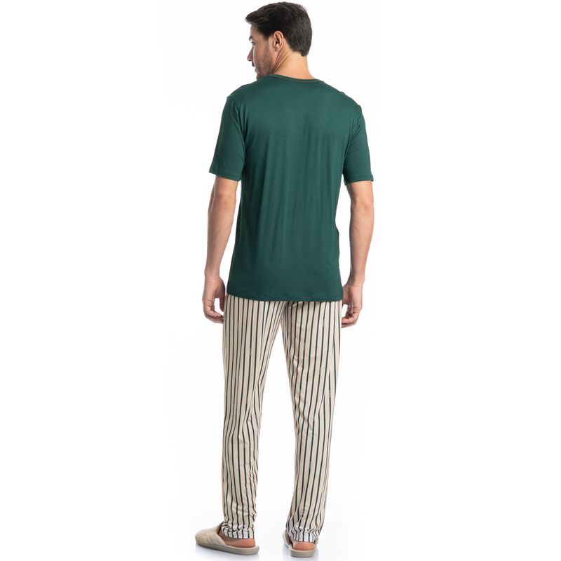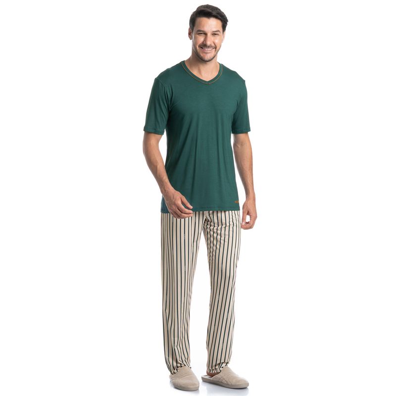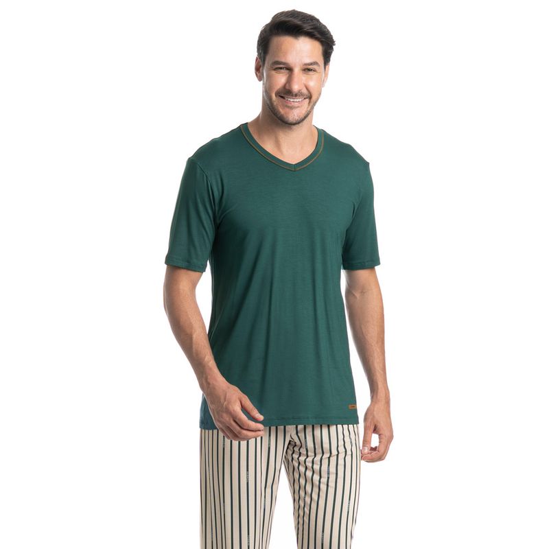 Pijama Masculino Longo Manga Curta Tombini é perfeito para as noites mais quentes! Em modelagem muito confortável, sua blusa manga curta possui decote em V com acabamento em viés com trançador de tom contrastante. Detalhe para a etiqueta personalizada Tombini na lateral inferior esquerda. Já sua calça em modelagem ampla e confortável, é toda estampada em uma moderna listra e possui elástico macio no cós que garante muito conforto para as horas de descanso!
