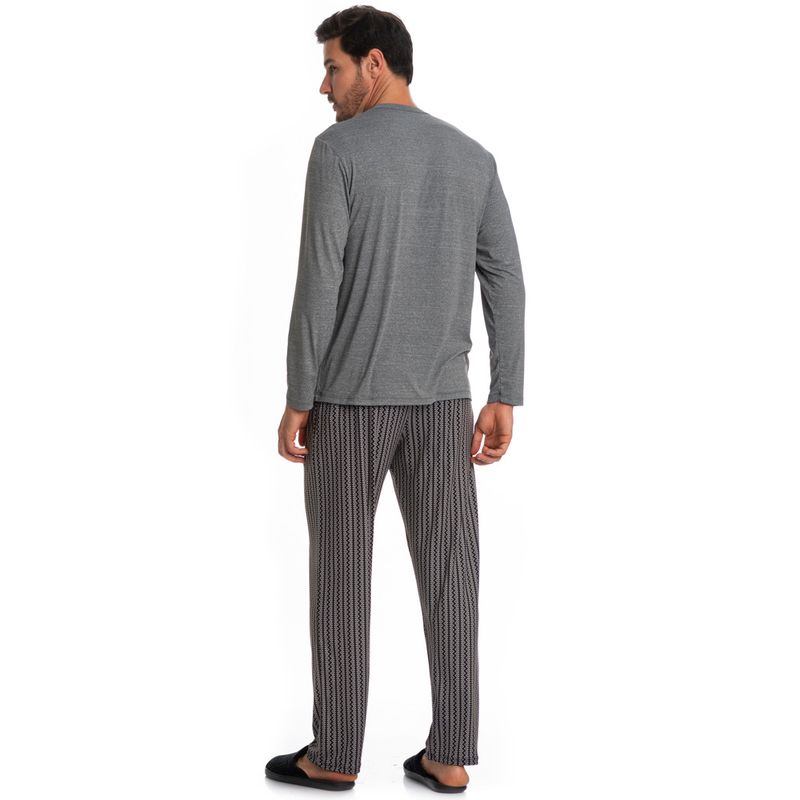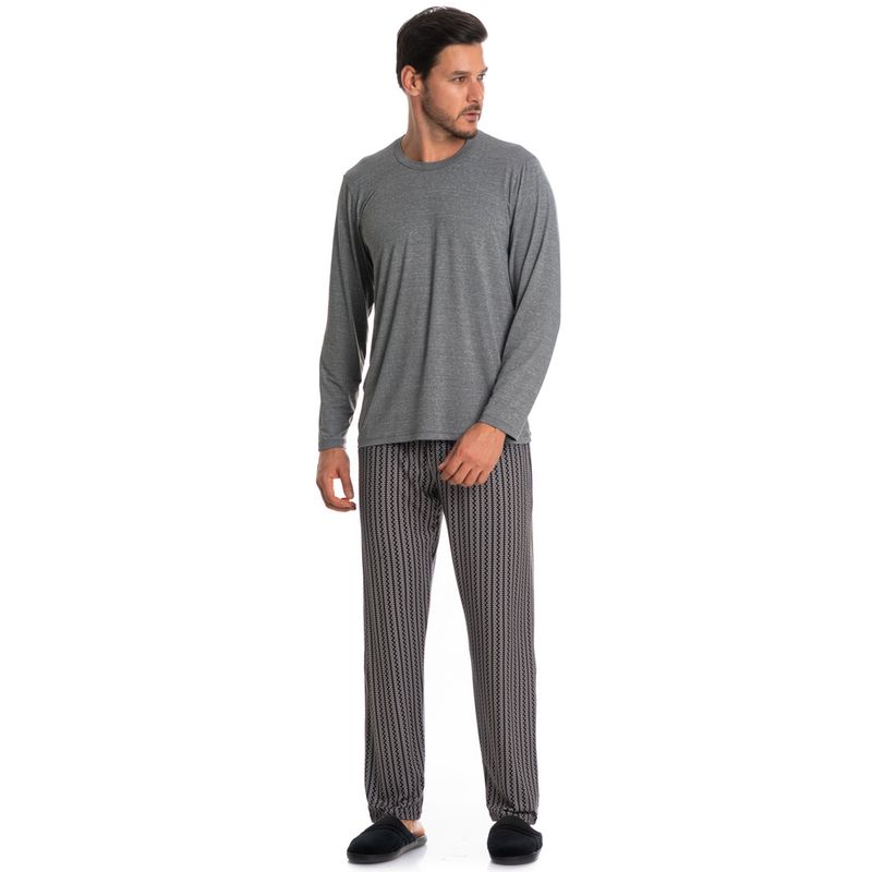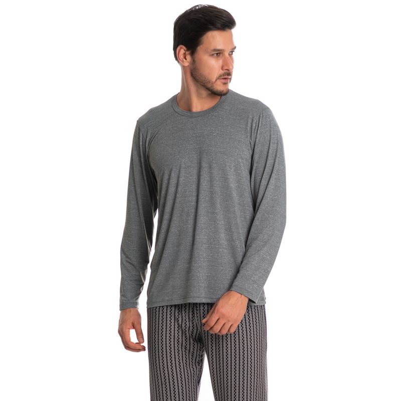 Pijama Masculino Longo Manuel Tombini é puro conforto! Sua Blusa manga longa com modelagem ampla e confortável, possui decote redondo com acabamento em viés. Detalhe para sua etiqueta clips na lateral inferior esquerda da peça. Sua calça em modelagem ampla é toda estampada, e possui elástico macio no cós para maior conforto.