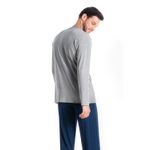 Pijama Masculino Longo Romeu é a nossa peça clássica que você ama! Sua blusa manga longa toda lisa, possui decote em V debruado com viés. Detalhe para a etiqueta Tombini longa em couro na lateral esquerda.