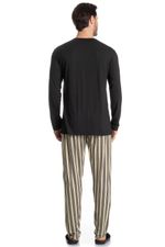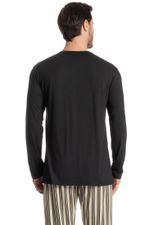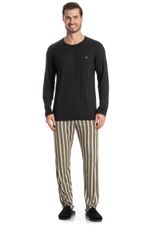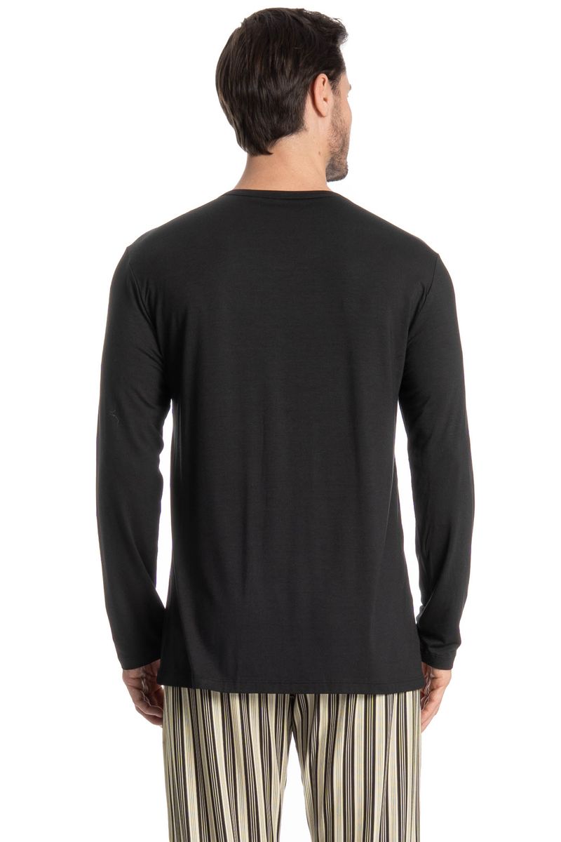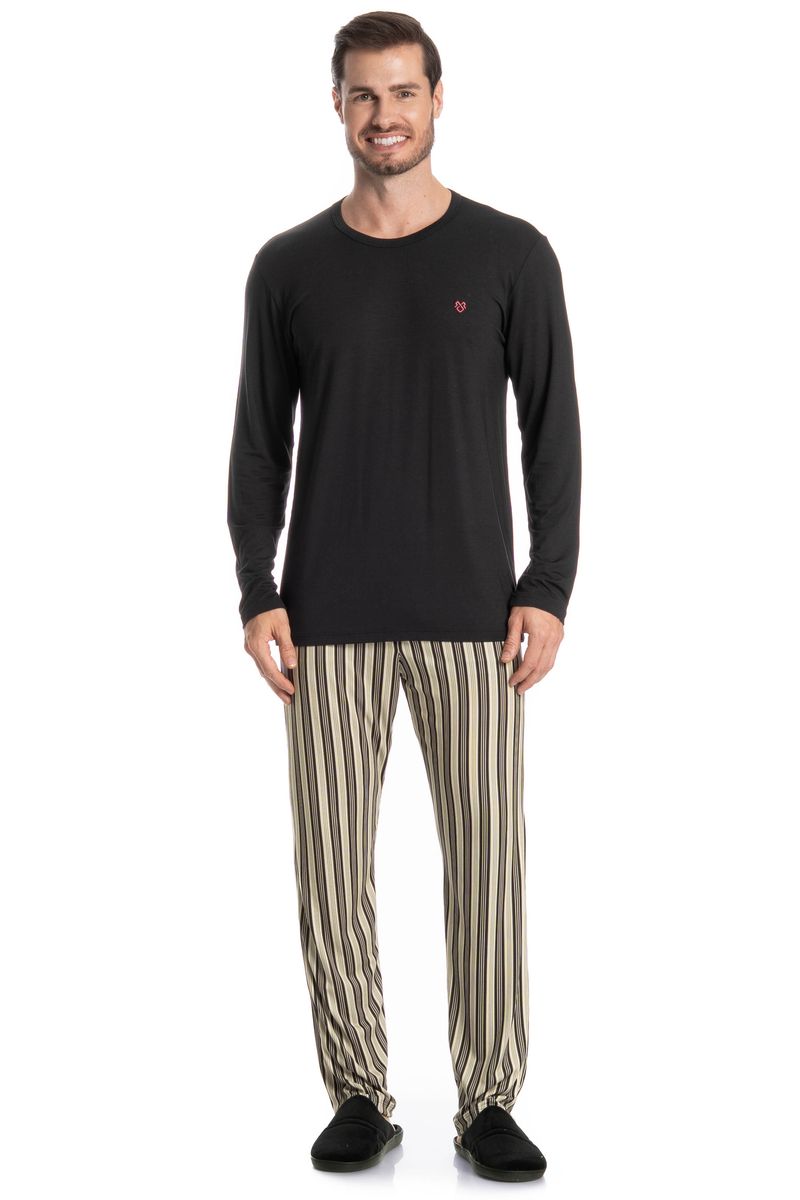 Pijama Masculino Longo Soulmate é excelente para suas noites! Em modelagem muito confortável, sua blusa manga longa possui decote redondo com acabamento em viés. Detalhe para seu bordado logo Tombini na lateral esquerda. Sua calça muito confortável, possui uma linda estampa listrada. Muito estilo e conforto para estar com você!