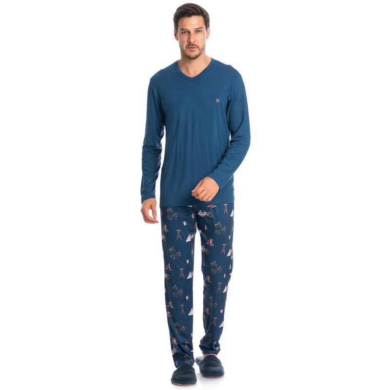 Pijama Masculino Longo Trekking Tombini é puro conforto! Sua Blusa manga longa, com modelagem ampla e confortável, possui decote em V com acabamento em viés. Detalhe para seu bordado logo na lateral esquerda da peça. Sua calça, em modelagem ampla, possui elástico macio no cós para maior conforto.
