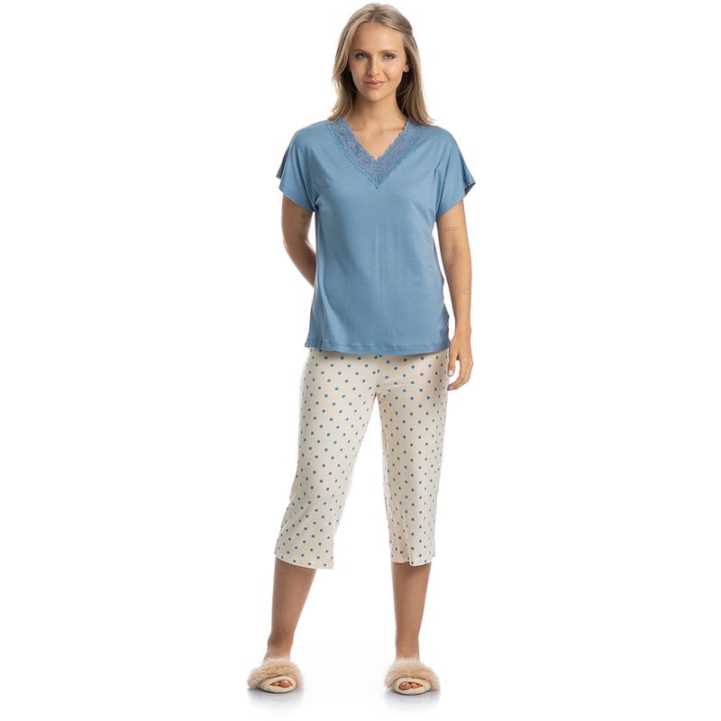 Pijama Pescador Com Renda Maria é conforto para suas noites! Em modelagem ampla e muito confortável, sua blusa com decote em V possui aplicação de uma linda e delicada renda. Detalhe para seu bordado logo Daniela Tombini na lateral inferior esquerda da peça. Já a sua calça possui modelagem pescador e conta com uma linda e exclusiva estampa poá.