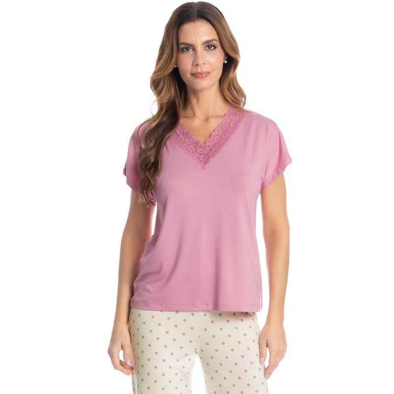 Pijama Pescador Com Renda Maria é conforto para suas noites! Em modelagem ampla e muito confortável, sua blusa com decote em V possui aplicação de uma linda e delicada renda. Detalhe para seu bordado logo Daniela Tombini na lateral inferior esquerda da peça. Já a sua calça possui modelagem pescador e conta com uma linda e exclusiva estampa poá.