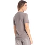 Pijama Pescador Latte é puro conforto! Sua blusinha em modelagem ampla, conta com mangas curtas e como detalhe um delicado bordado logo Daniela Tombini na lateral esquerda da peça. Sua calça em modelagem pescador é soltinha e leve, possui elástico macio no cós e uma moderna e exclusiva estampa de listras, garantindo ainda mais charme!