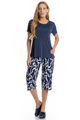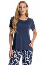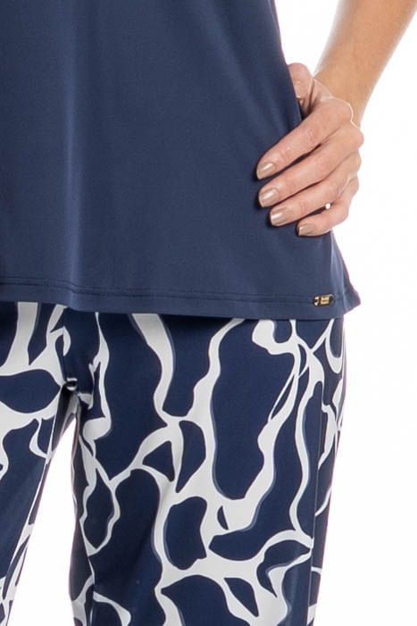 Pijama Feminino Pescador Teresa é puro conforto! Em modelagem ampla e confortável, sua blusa lisa manga curta possui decote redondo. Detalhe para a delicada plaquinha Daniela Tombini na lateral inferior esquerda da peça. Já a sua calça com uma linda estampa, conta com modelagem pescador e elástico macio e confortável no cós.
