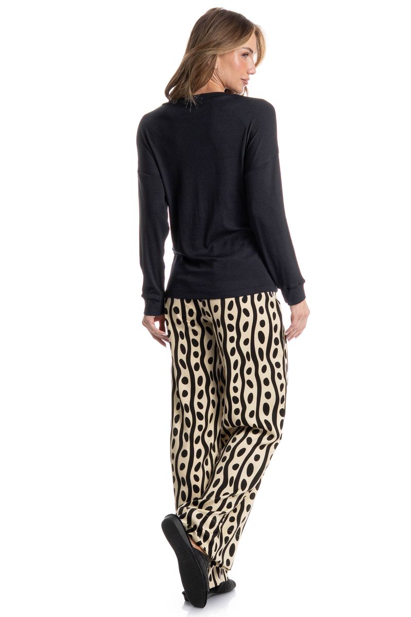 Pijama Wide Leg Lara é conforto e estilo para suas noites! Sua blusa lisa possui decote redondo debruado em viés, manga longa. Já sua calça, em modelagem confortável possui elástico macio no cós que garante muito conforto nas horas de descanso. Detalhe para seu lindo laço que confere muito charme a peça. Perfeito para te deixar ainda mais linda nos melhores momentos!
