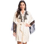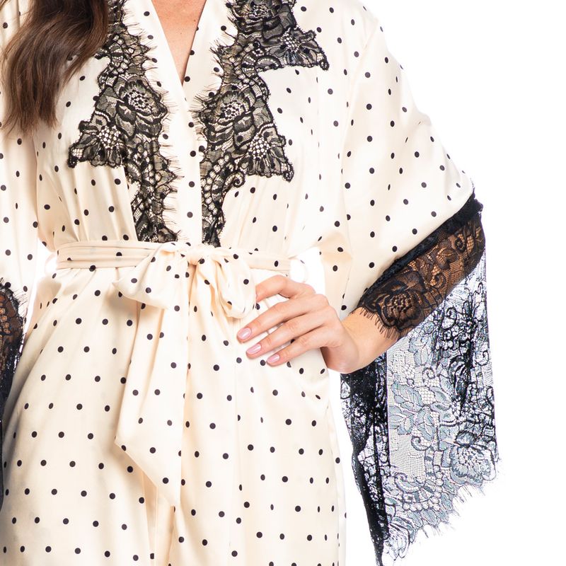 Robe Curto Feminino Bia é elegância para suas noites de verão! Em modelagem ampla e muito confortável, seu comprimento é curto e sua frente possui detalhes em renda. Sua manga com aplicação em renda também oferece muita delicadeza e sofisticação. Detalhe para sua linda estampa em poá. Muita sensualidade e sutileza para momentos inesquecíveis!