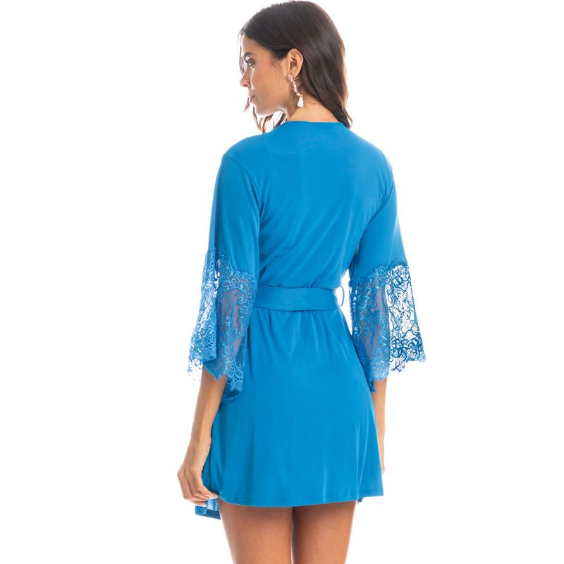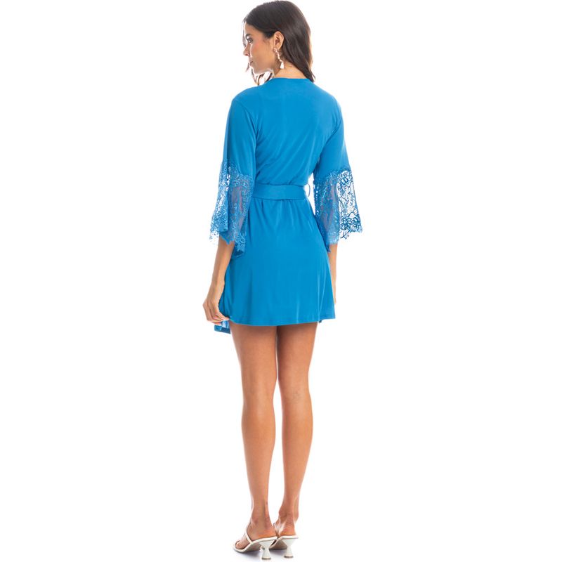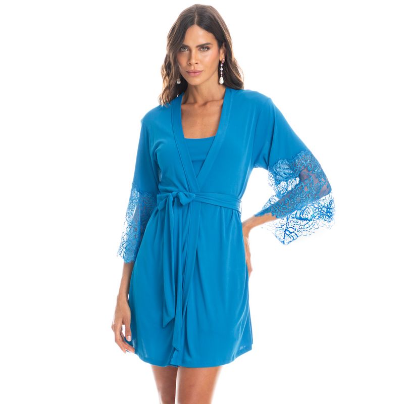 Robe Feminino Curto Com Renda Color é elegância para suas noites de verão! Com uma modelagem moderna e solta, o robe Color ganhou nossos corações. Seu comprimento é curto, possui acabamentos em viés, e renda de alta qualidade nas mangas que garantem ainda mais delicadeza e sofisticação a peça.