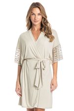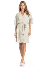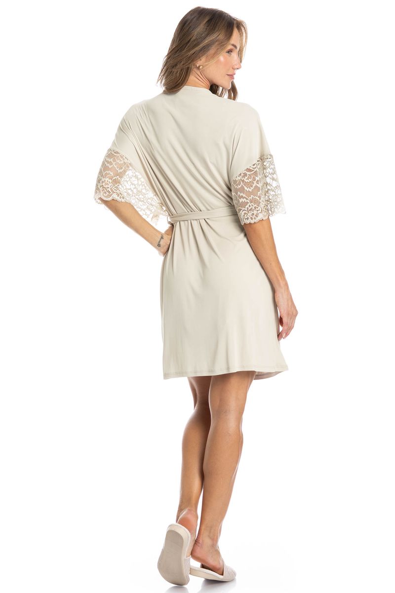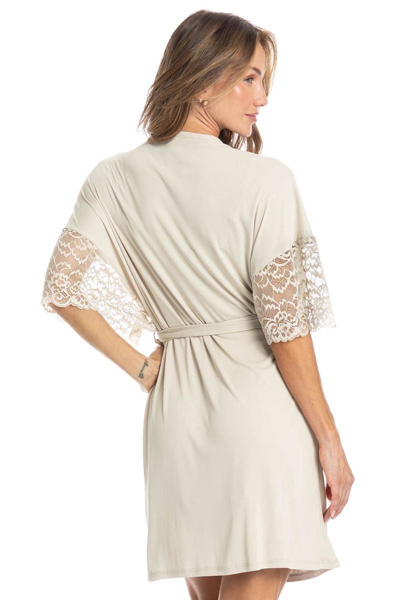 Robe Feminino Curto Com Renda Manu é um verdadeiro charme! Com uma modelagem moderna e solta, o robe Manu ganhou nossos corações. Seu comprimento é curto, possui acabamentos em viés, e renda de alta qualidade nas mangas que garantem ainda mais elegância e sofisticação a peça.