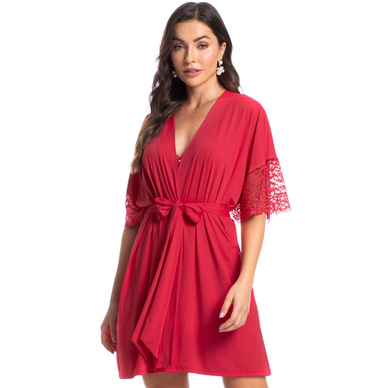 Robe Feminino Curto Com Renda Manu Colors é um verdadeiro clássico! Com uma modelagem moderna e solta, o robe Manu ganhou nossos corações. Seu comprimento é curto, possui acabamentos em viés, e renda de alta qualidade nas mangas que garantem ainda mais elegância e sofisticação a peça.