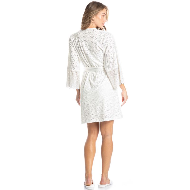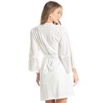Robe Feminino Curto Em Rendão Lótus é um verdadeiro charme! Com uma modelagem moderna e solta, o robe Lótus ganhou nossos corações. Seu comprimento é curto, possui sua faixa e cinto em sofisticado cetim, e renda de alta qualidade nas mangas que garantem ainda mais elegância e sofisticação a peça.