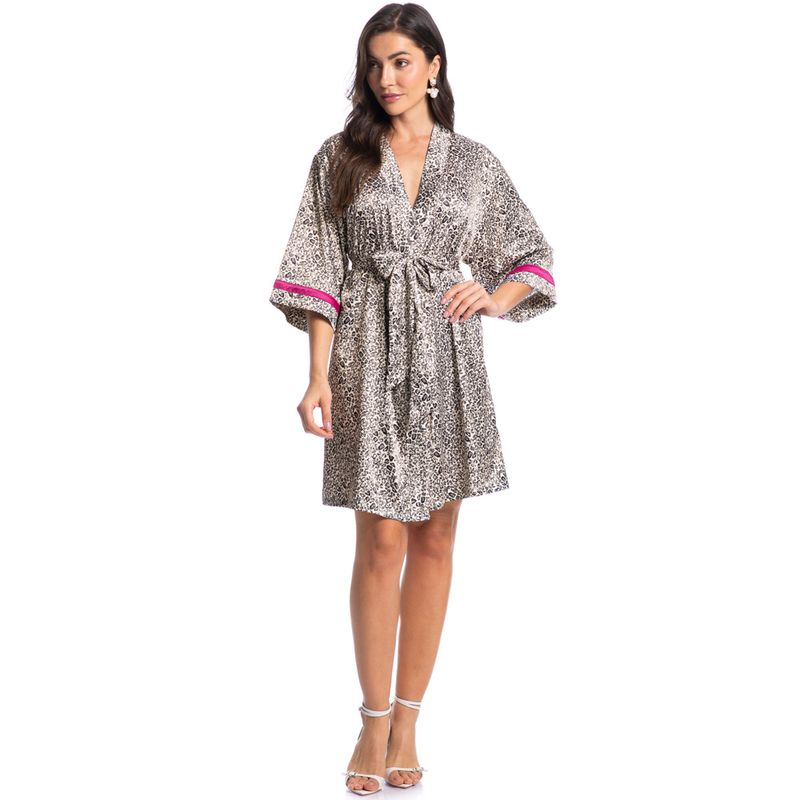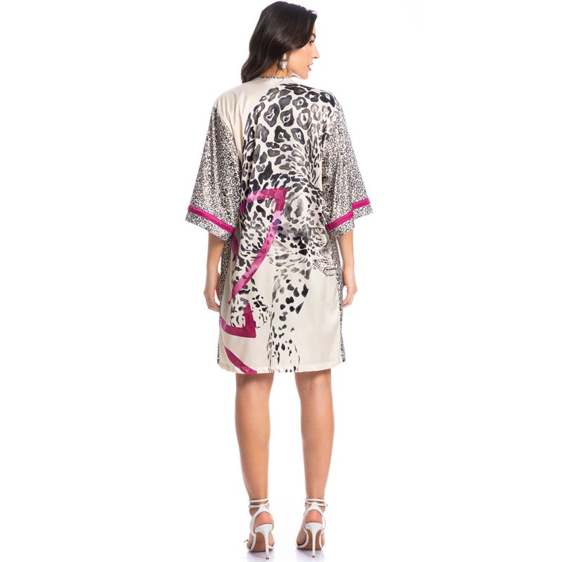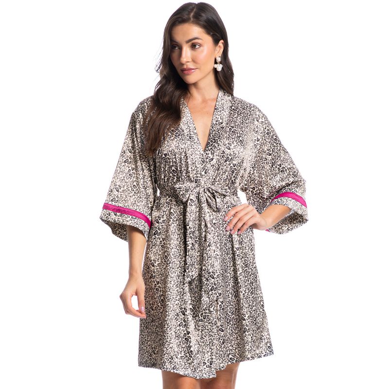 Robe Feminino Curto Luna é pura elegância! Em modelagem curta, ampla e confortável este robe é todo em cetim, possui amarre na cintura e mangas comprimento 3/4 com acabamento em viés e filete de cetim contrastante na manga que confere muito estilo. Detalhe para sua linda estampa localizada na costas. Pensado e desenvolvido para quem ama peças delicadas, com toque incomparável e que proporcionam excelente vestibilidade.