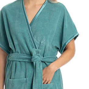 Robe Feminino Em Atoalhado Natália Colors ganhou nossos corações! A peça em comprimento próximo ao joelho, possui modelagem ampla e confortável, conta com amarre, manga curta, bolsos frontais e sofisticado viés de cetim como acabamento na barra das mangas e faixas frontal. Detalhe para o bordado exclusivo Daniela Tombini na lateral esquerda da peça. Um verdadeiro charme!