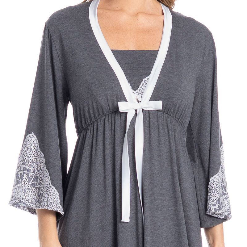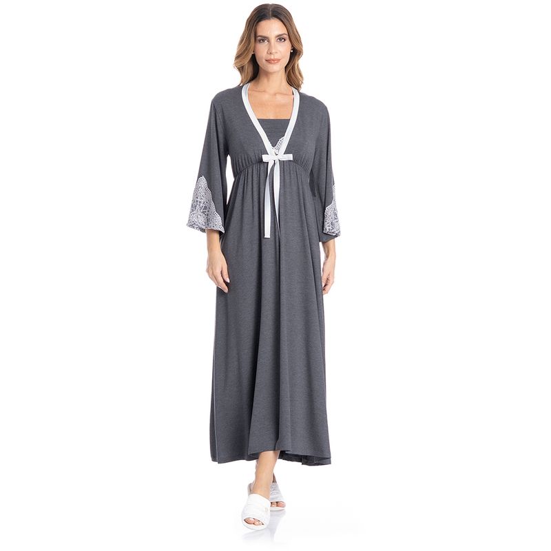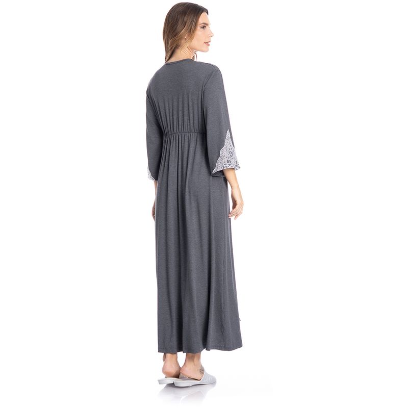 Robe Feminino Longo Bruna é conforto e elegância nos melhores momentos! Com uma modelagem moderna e soltinha, o Robe Bruna ganhou nossos corações. Seu comprimento é longo, possui como detalhe sua faixa frontal e amarre em cetim, e renda de alta qualidade nas mangas que garantem ainda mais elegância e sofisticação a peça.