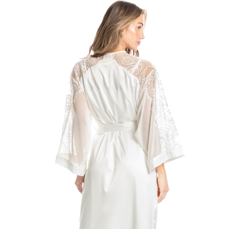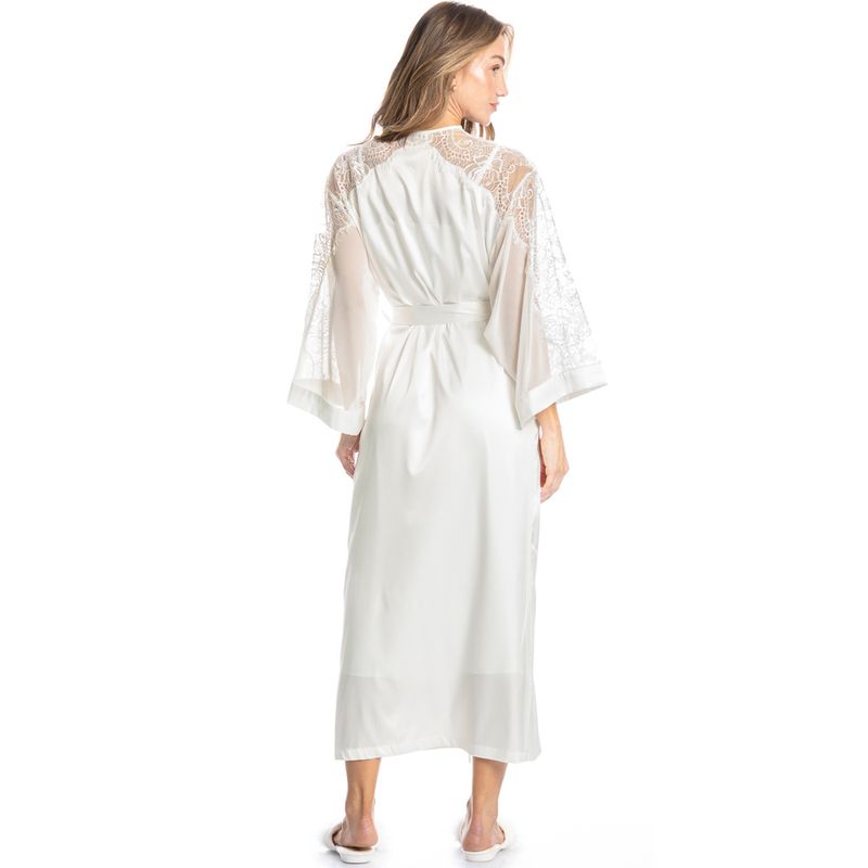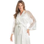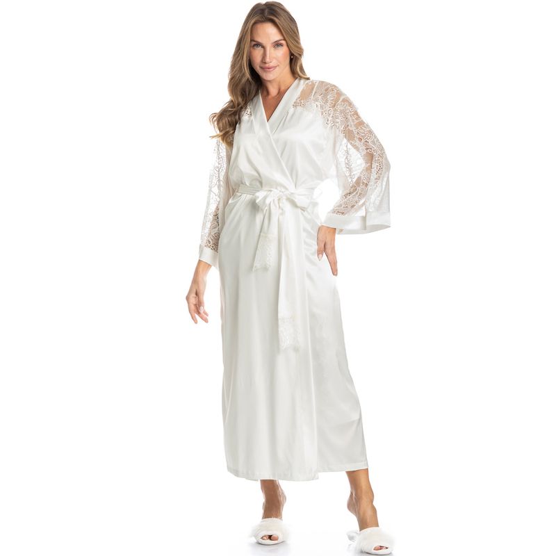 Robe Feminino Longo Com Renda Jasmin é elegância para suas noites! Em modelagem ampla e muito confortável, seu comprimento é longo e suas mangas são confeccionadas em uma linda e delicada renda. Muito conforto e sofisticação para seus melhores momentos!