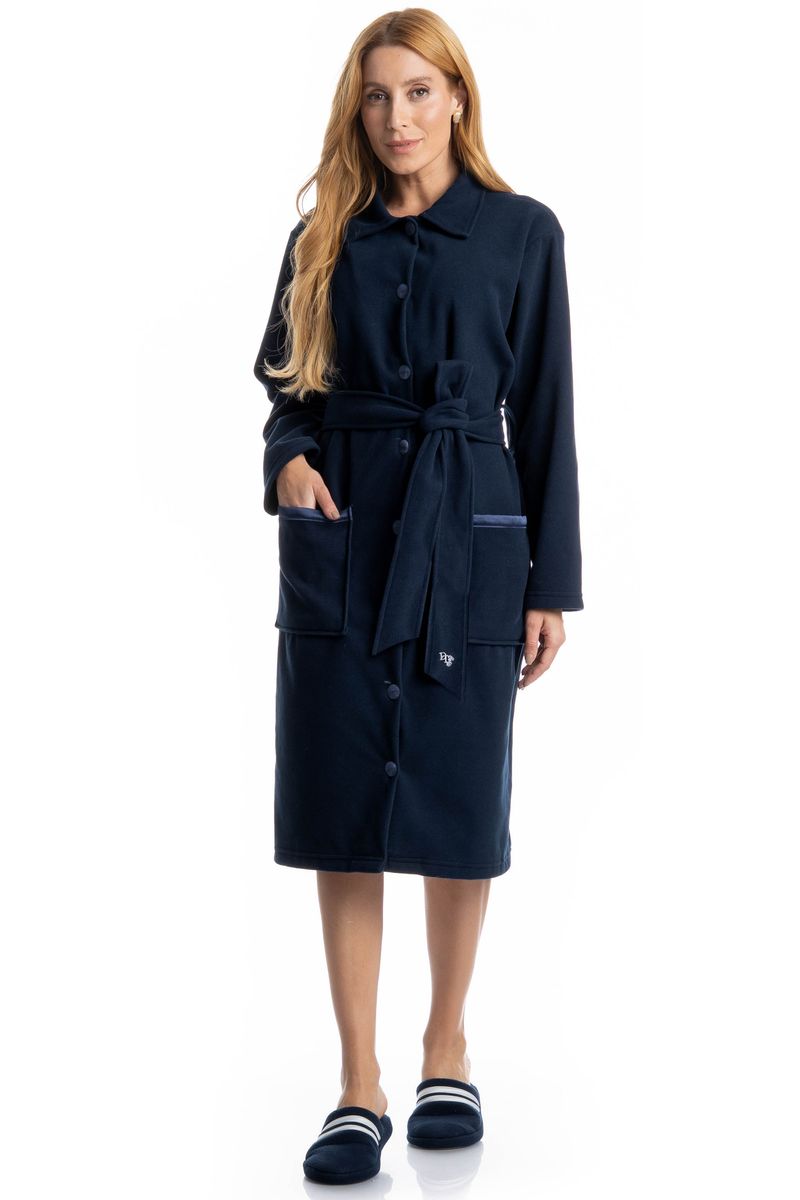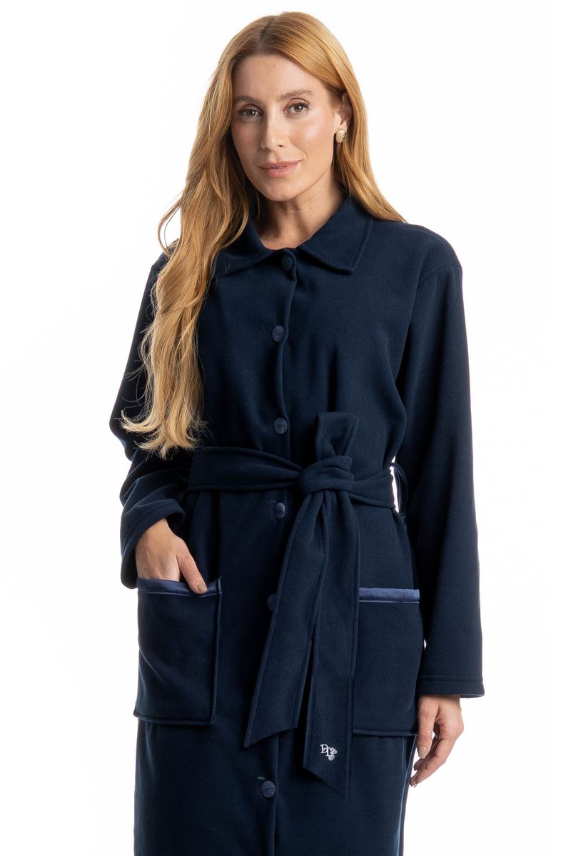 Robe Feminino Médio Letícia em modelagem clássica e elegante, perfeito para momentos de conforto com muito estilo. Confeccionado em tecido macio e aconchegante, ele possui toque suave e caimento impecável ao corpo. O modelo conta com fechamento frontal por botões, gola tradicional que traz um charme atemporal e faixa para amarração na cintura, permitindo ajuste perfeito e valorizando a silhueta. Os bolsos frontais amplos agregam praticidade ao dia a dia, enquanto o comprimento médio proporciona ainda mais conforto e sofisticação. Ideal para compor seus momentos de descanso com elegância e bem-estar.