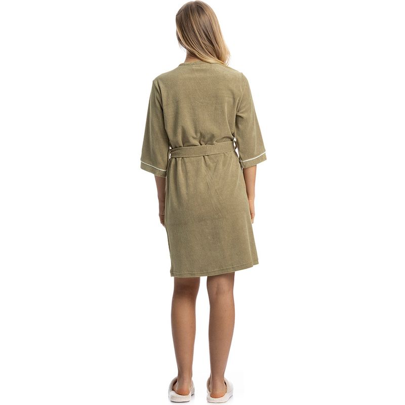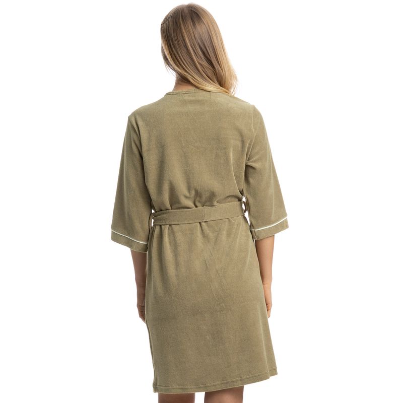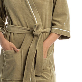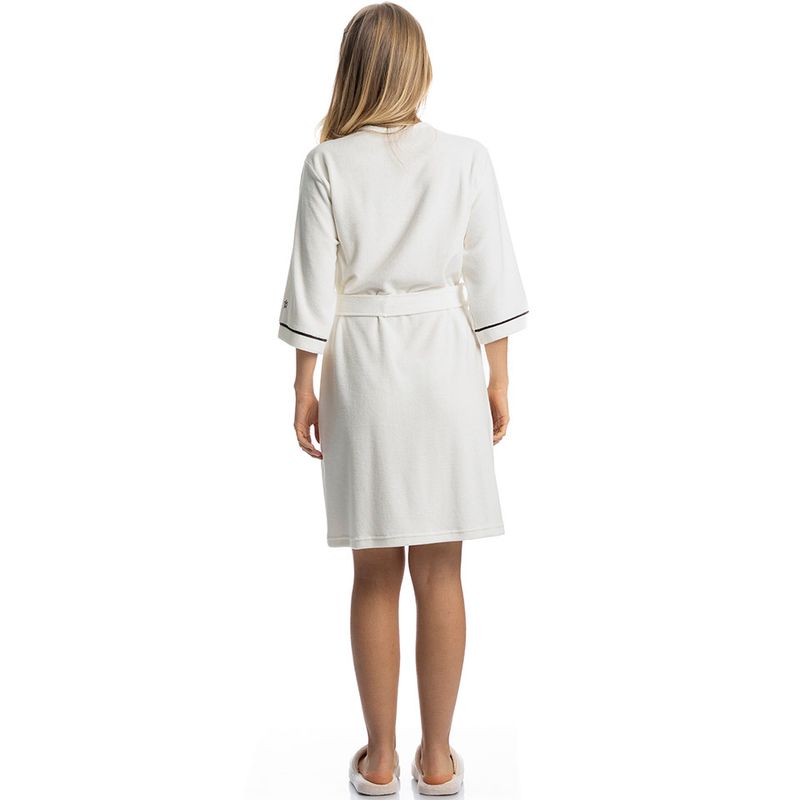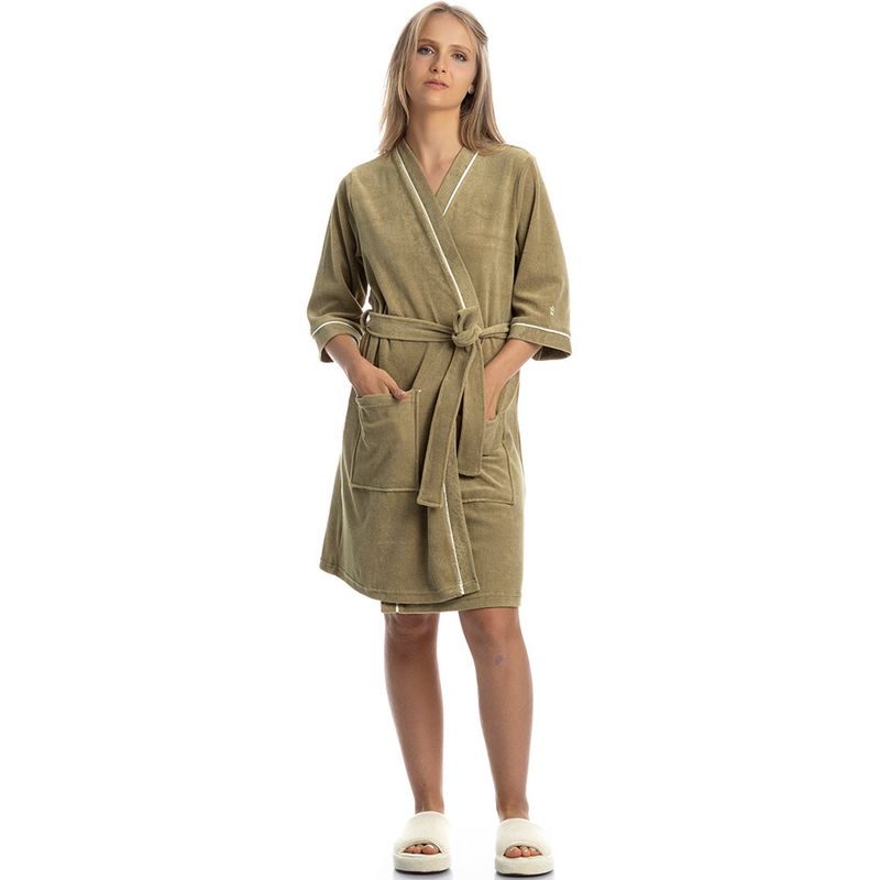 Robe Feminino Vanessa é sinônimo de conforto e elegância para seus momentos de descanso. Com comprimento próximo ao joelho e modelagem ampla, garante caimento leve e aconchegante. Possui amarre interno, cinto externo, bolsos frontais e mangas 7/8, unindo praticidade e estilo. O charme extra fica por conta do bordado com a logo Daniela Tombini na manga esquerda e dos sofisticados filetes de cetim que contornam suas frentes e mangas, adicionando um toque de requinte à peça.