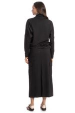 Confeccionado em Malha Modal Sand Washed Duo tecido de malha de trama dupla, composto por fios fiados de modal, filamentos texturizados de poliéster e elastano, oferecendo toque extremamente macio, caimento leve e elasticidade confortável. Tingido em peça e finalizado com acabamento estonado, apresenta aparência levemente desgastada e textura suave ao toque. Por se tratar de um tecido delicado, requer cuidados no uso e na conservação: recomenda-se evitar atrito com superfícies ásperas ou com rebarbas, mantendo o contato preferencialmente com materiais lisos e polidos para preservar sua integridade e aparência ao longo do tempo.