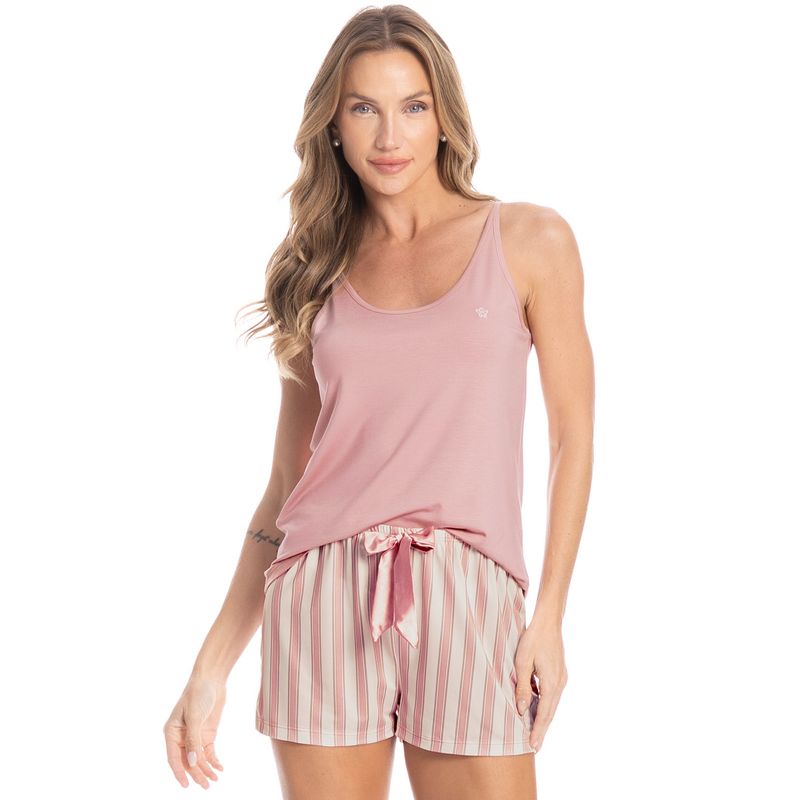 Short Doll Carmela é puro conforto! Sua blusinha em modelagem ampla, conta com alças finas e como detalhe um delicado bordado logo Daniela Tombini na lateral esquerda da peça. Seu shorts é soltinho e leve, possui elástico macio no cós e uma moderna e exclusiva estampa de listras. Detalhe para seu laço de cetim aplicado no centro do cós, garantindo ainda mais charme!