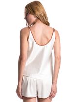 Short Doll Em Cetim Celina é pura elegância! Em modelagem muito confortável, sua blusa possui alças finas e decote redondo com acabamento em viés de tom contrastante. Seu short é curto, soltinho e leve, possui como diferencial suas laterais transpassadas com acabamento em viés contrastante, elástico macio no cós proporcionando um melhor descanso, e um lindo laço aplicado no centro do cós. Perfeito para te deixar ainda mais linda em dias mais quentes!