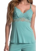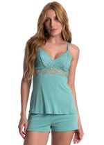 Short Doll Com Renda Manu Colors é pura elegância! Com bojo em renda, e acabamento em elástico que proporciona uma excelente sustentação, alças ajustáveis e recortes em renda no busto tornam a peça ainda mais sofisticada. Seu short com modelagem mais solta, é extremamente confortável. Uma excelente opção para quem ama um pijama moderno e aconchegante!
