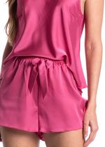 Short Doll Em Cetim Clara é pura elegância! Em modelagem muito confortável, sua blusa possui alças finas e decote redondo debruado em viés. Seu short curto, soltinho e leve conta com elástico macio e confortável no cós para um melhor descanso. Detalhe para seu lindo laço no centro do cós. Disponível em duas opções de cores, a escolha perfeita para seu verão!