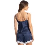 Short Doll Mini Com Renda Marina é perfeito para as noites mais quentes! Sua blusa em modelagem ampla, possui decote em V com acabamento em renda, e suas alças são reguláveis. Seu shorts, possui modelagem mais solta com aplicação de renda na barra, e conta com elástico macio e confortável no cós. Detalhe para o delicado laço aplicado no cós da peça proporcionando ainda mais charme!