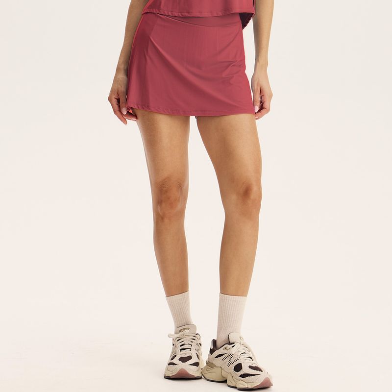 Sua saia confeccionada em New Trip, desenvolvido com microfibra de poliamida juntamente com fio ultrafino que é responsável pela formação dos microporos, proporcionando toque suave, excelente respirabilidade e transpiração. É um artigo de secagem rápida, perfeito para os exercícios aeróbicos e corridas.