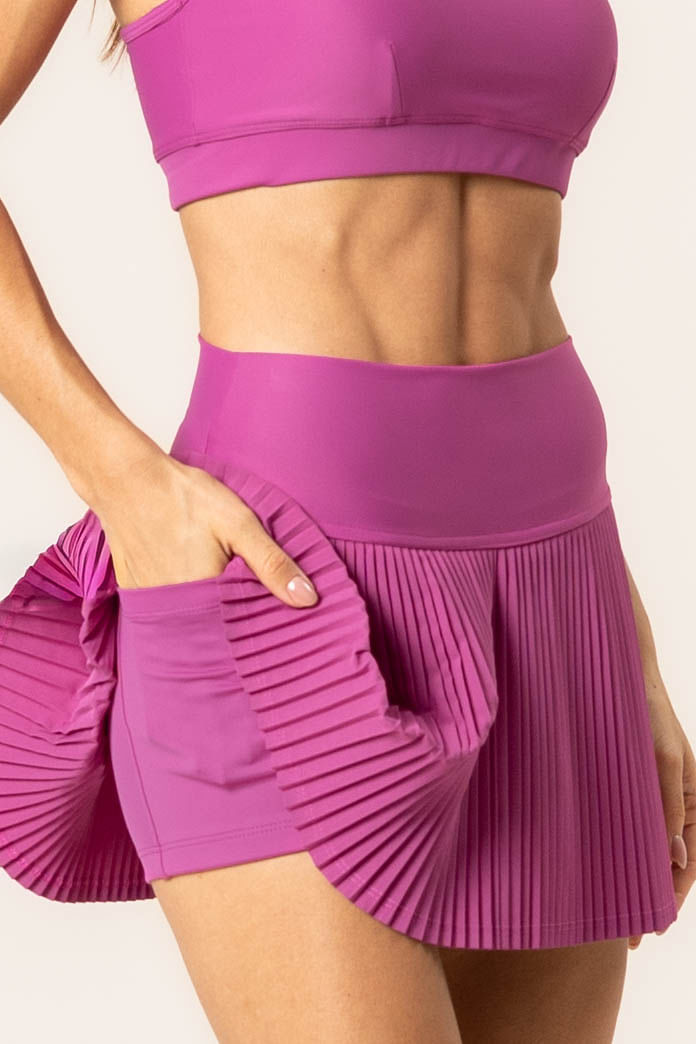 Short Saia Plissado Magenta é perfeito para seus treinos! A peça possui cós alto, conta ainda com short com bolso lateral, e sobreposição plissada. A escolha perfeita que garantirá ainda mais motivação para suas práticas esportivas.
