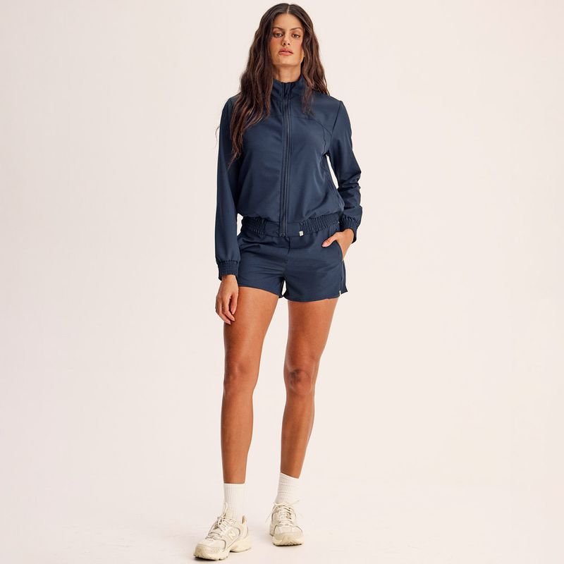 Confeccionado em Ergonomic Flex New, tecido plano formado por fios de filamentos de poliéster e elastano, no urdume e na trama.