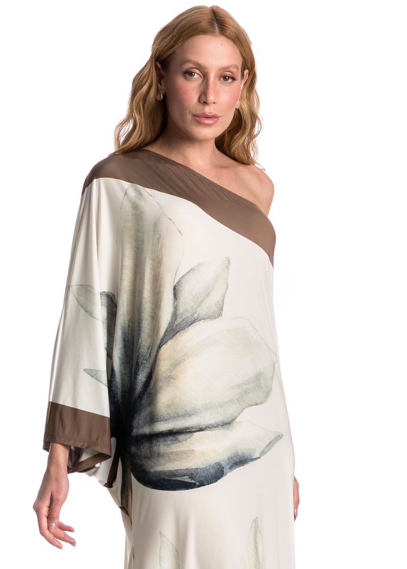 Vestido Assimétrico Com Manga Brisa é a escolha perfeita para quem busca elegância com um toque moderno. Apresenta modelagem ampla e fluida, com ombro só e manga longa, garantindo conforto e sofisticação. Sua estampa floral adiciona um charme extra à peça, transmitindo leveza e frescor. Ideal para compor looks despojados ou mais refinados com apenas a troca de acessórios.