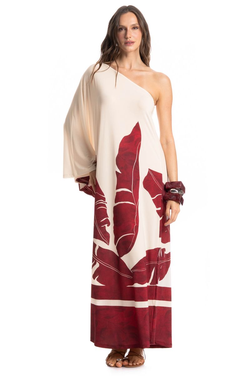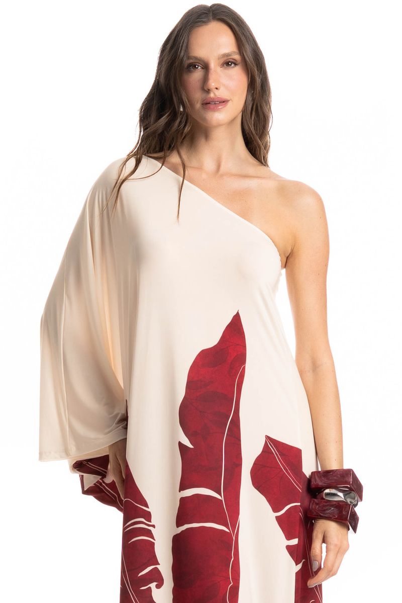 Vestido Assimétrico Folha é a escolha perfeita para quem busca elegância com um toque moderno. Apresenta modelagem ampla e fluida, com ombro só e manga longa, garantindo conforto e sofisticação. Sua estampa adiciona um charme extra à peça, transmitindo leveza e frescor. Ideal para compor looks despojados ou mais refinados com apenas a troca de acessórios.
