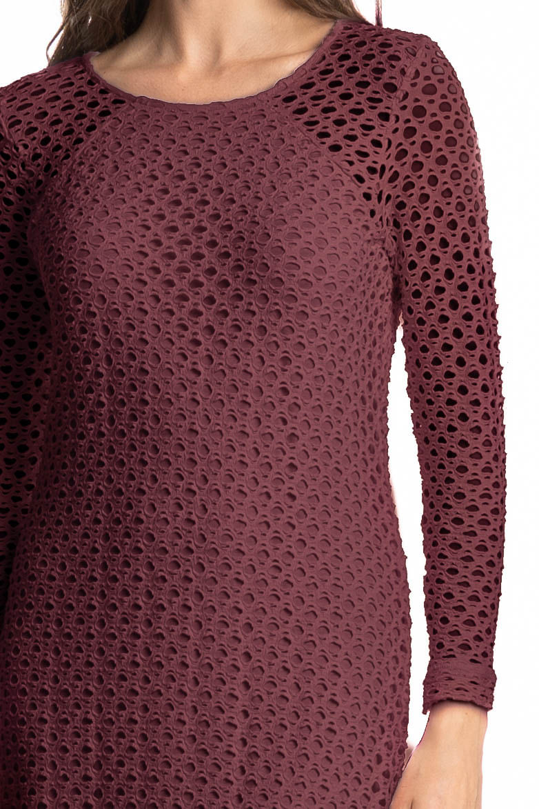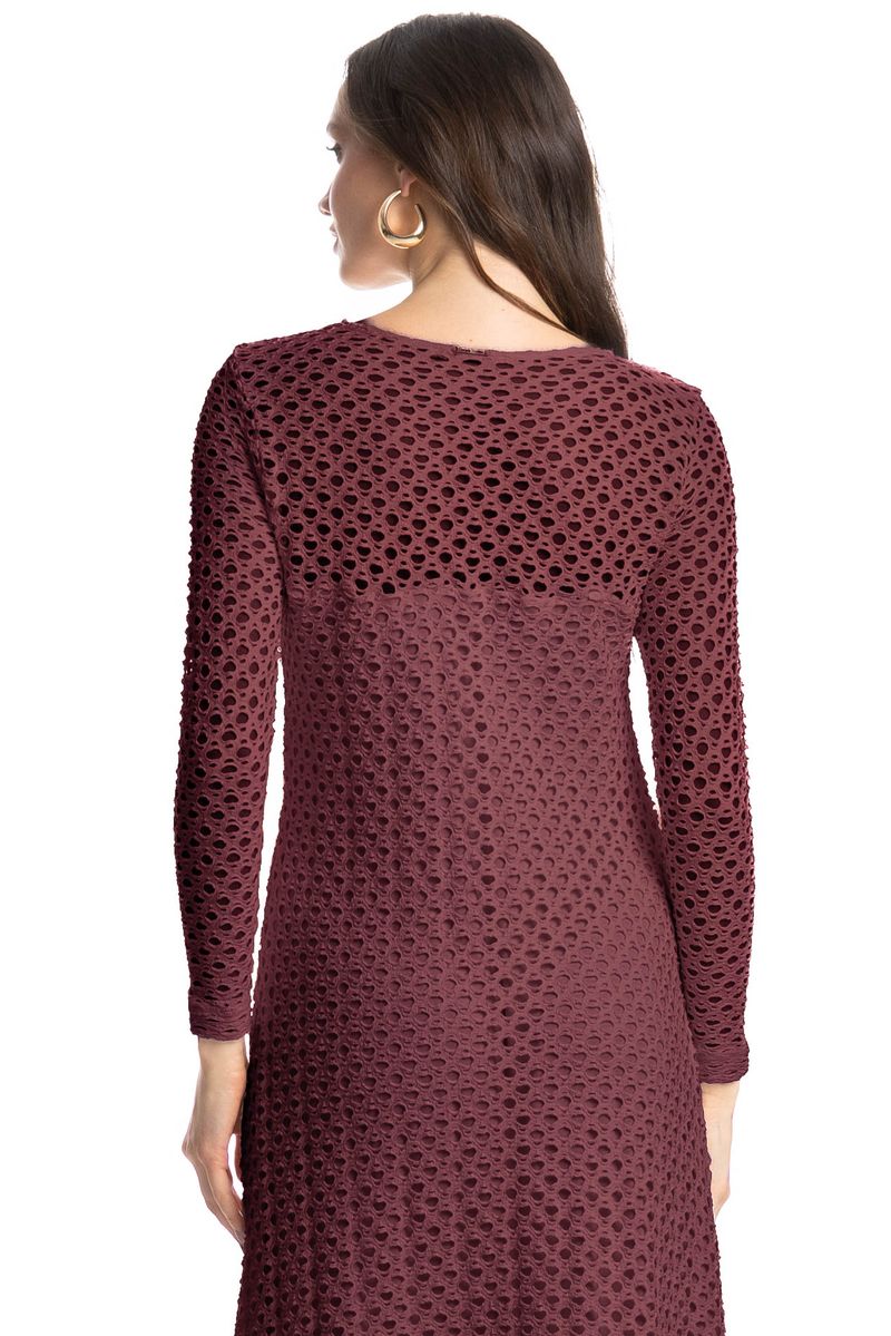 Confeccionada em Rendão, tecido vazado que confere uma aparência natural e única ao produto. Agradável ao toque e com caimento suave. Perfeito para peças de sobreposição e com leve transparência.