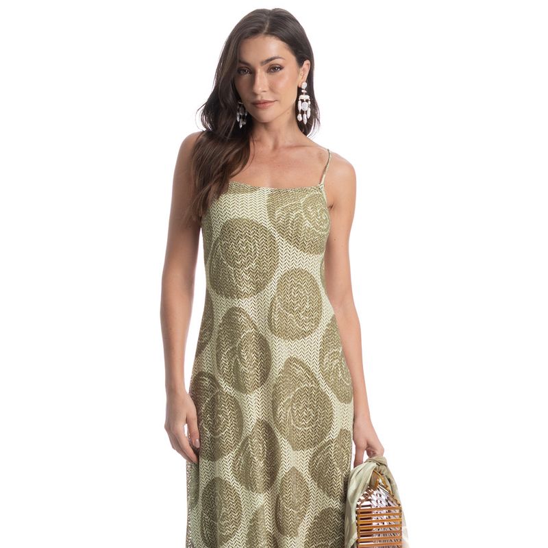 Vestido Conchas destaca a delicadeza e a autenticidade com uma modelagem fluida. Com decote reto e alças finas que se prolongam em amarração nas costas, ele evidencia a região do colo com leveza. O rendão estampado com conchas cria um efeito visual sofisticado, enquanto o forro interno garante conforto absoluto. Uma escolha versátil que transita do casual ao elegante com naturalidade.