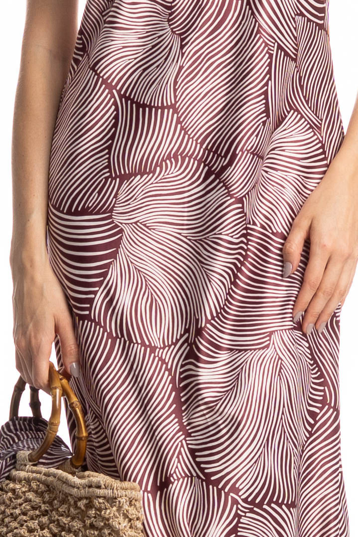 Vestido De Alcinha Cetim Merlot é a combinação perfeita entre elegância e conforto para os dias mais quentes do ano. Com comprimento longo e decote em “V”, a peça conta com alças finas e parte superior, oferecendo excelente sustentação e ajuste impecável ao corpo. A modelagem ampla proporciona liberdade de movimento e um toque extra de conforto. O destaque fica por conta da estampa moderna e exclusiva, que imprime personalidade e estilo em cada detalhe. Uma peça indispensável para viver o verão com charme e autenticidade.