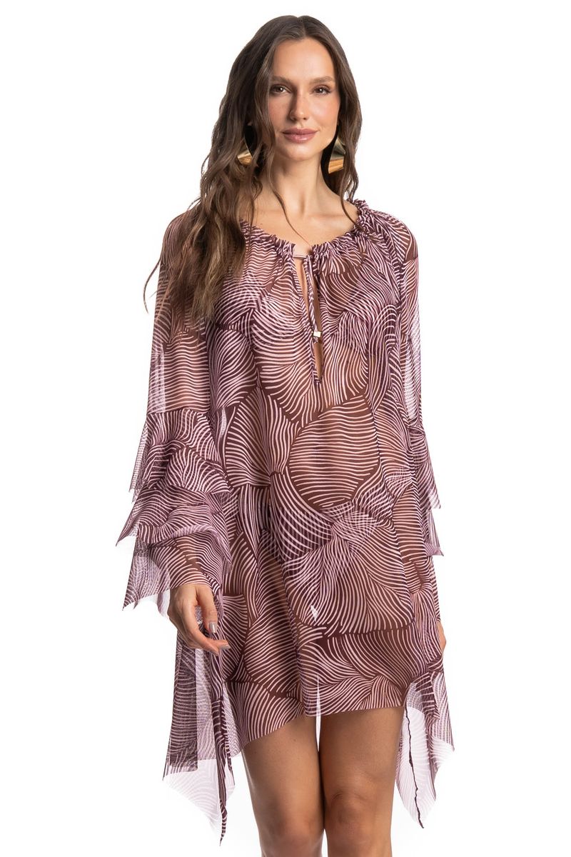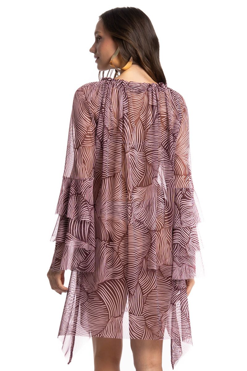 Vestido De Tule Com Babados Merlot é sinônimo de estilo e leveza para os dias ensolarados! Com modelagem curta e fluida, ele conta com uma estampa moderna que traz personalidade e sofisticação à peça. As mangas longas ganham destaque com delicados babados, adicionando movimento à peça. O decote conta com amarre ajustável, deixando a peça ainda mais estilosa. Ideal para composições de verão com estilo e atitude!