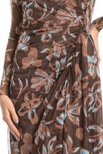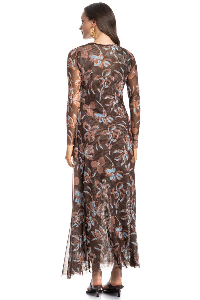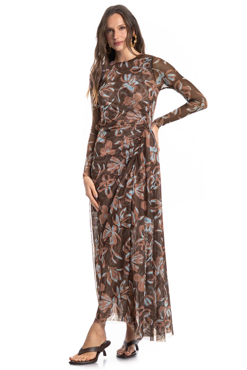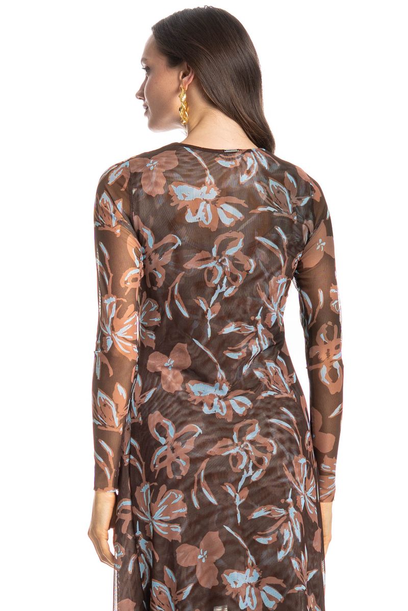 Confeccionado em Tule Estampado, tecido leve, fino e com transparência. Não amassa e possui um caimento perfeito, proporcionando peças super fluidas.