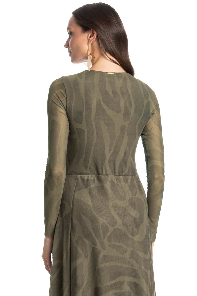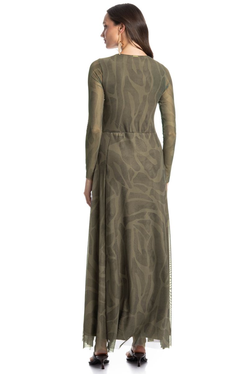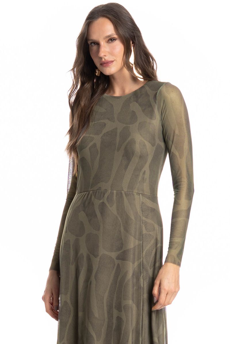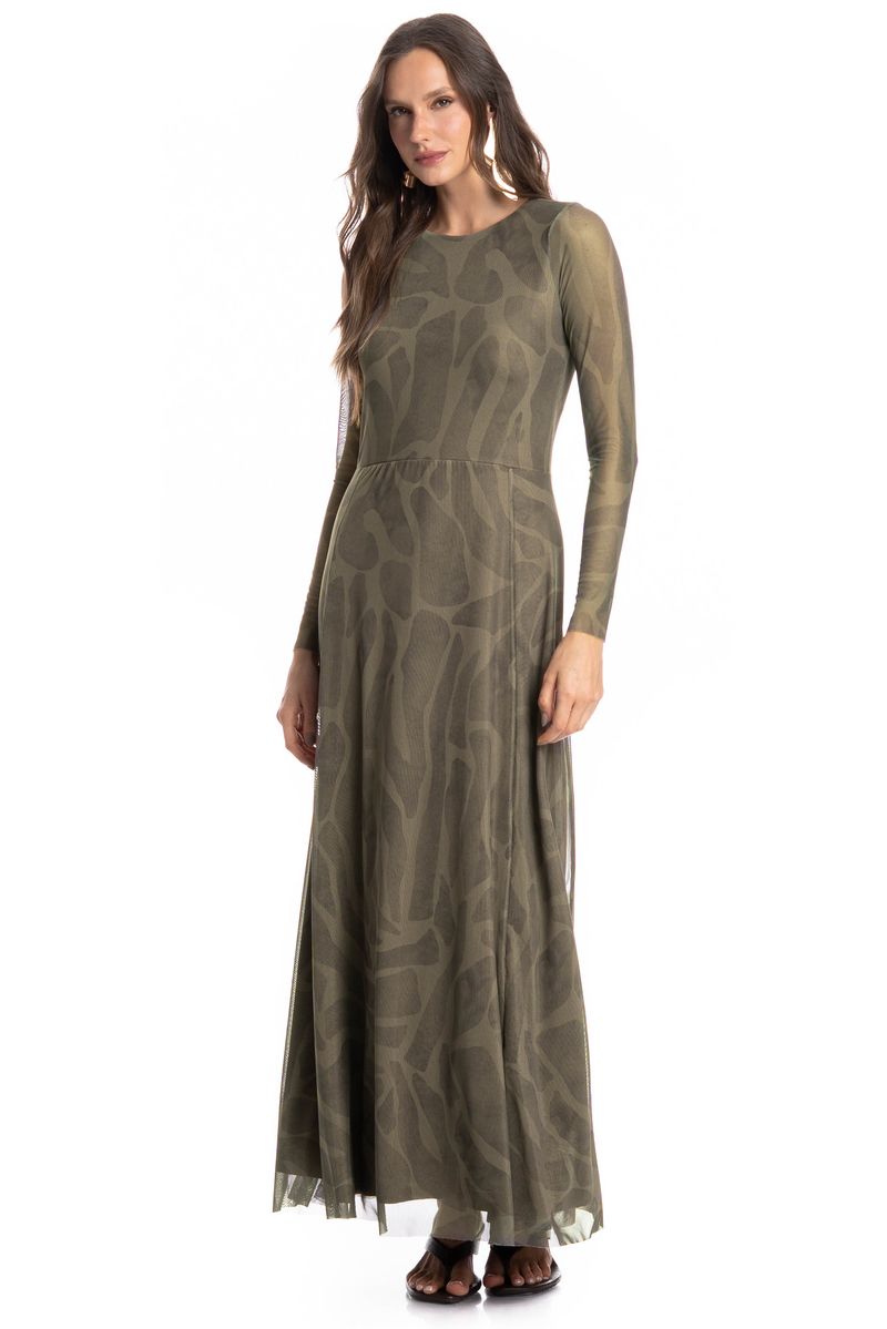 O Vestido De Tule Com Manga Longa Safari combina elegância e leveza em um design moderno, possui mangas longas, recortes franzidos e comprimento longo, garantindo caimento fluido e sofisticado. Acompanha forro interno na mesma tonalidade para maior conforto e discrição. Ideal para eventos e ocasiões especiais.
